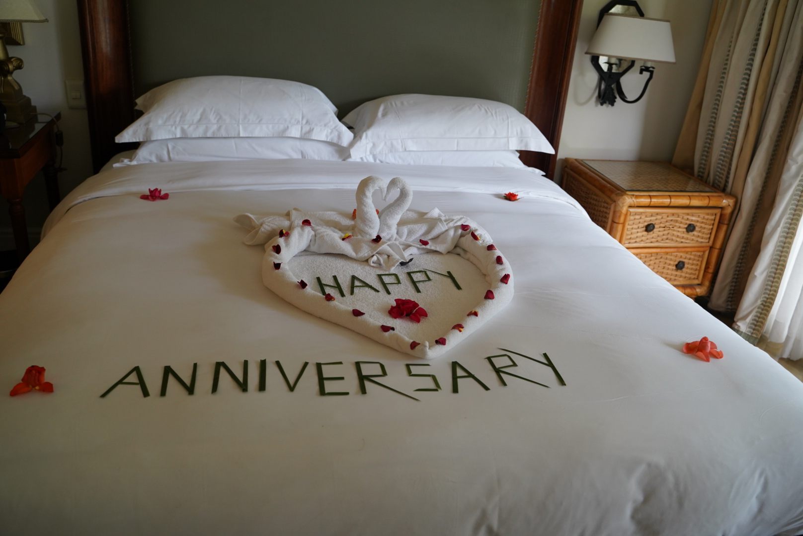 結婚記念日に宿泊したのでベッドデコレーションやケーキのサプライズも!