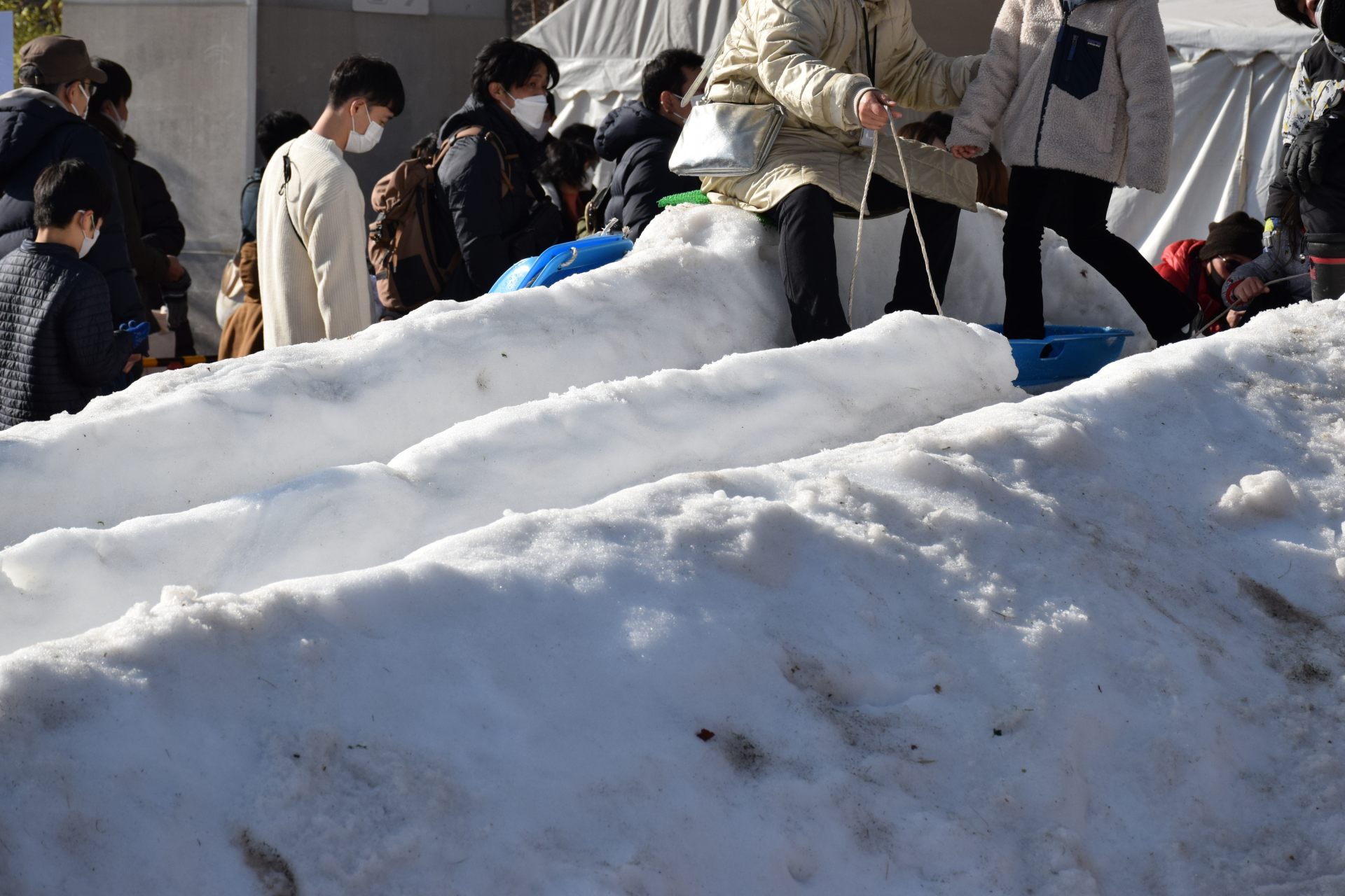 雪のすべり台やミニ雪だるま作り、雪玉プレゼント、ミニかまくら作り体験があり、長靴にスキーウェアなどの服装で来ている子どもたちを見かけました。