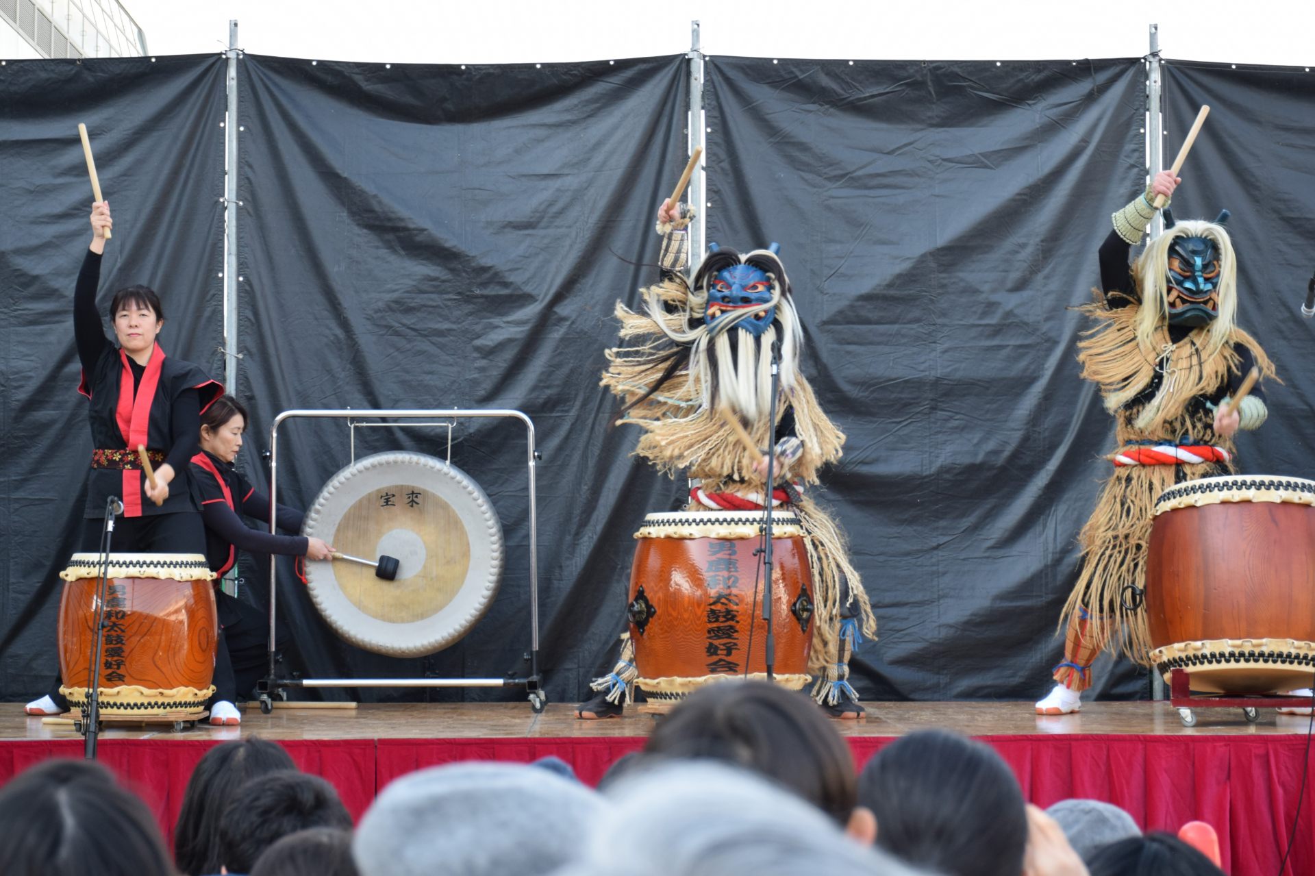 迫力ある太鼓演舞で、大勢の観客が魅了されていました。