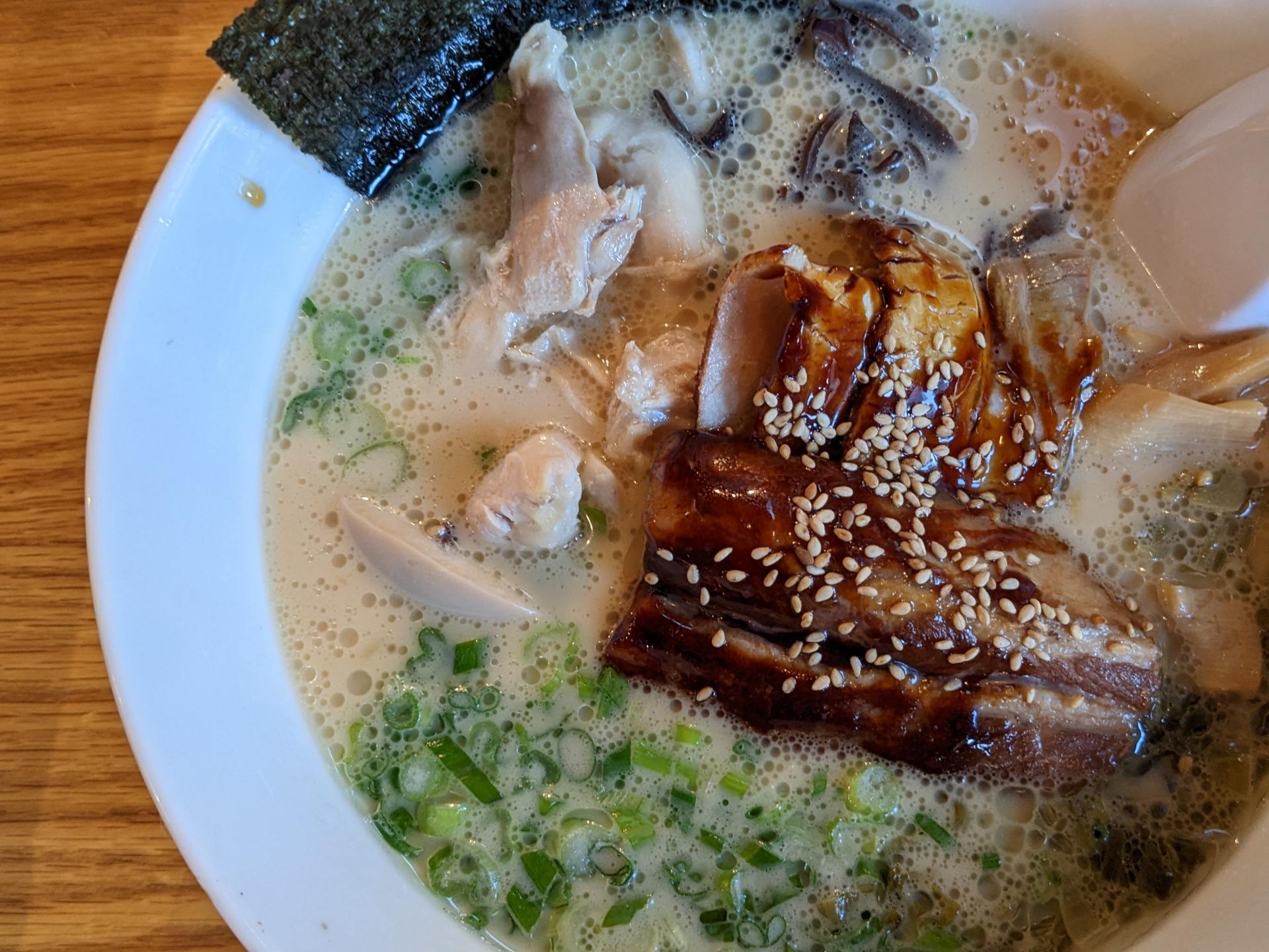 筆者は迷った挙げ句、筆者は注文数制限のある牛骨スープのラーメン(写真下)を、筆者の友人はAll Stars(写真上)を注文し、二人でシェアをすることにしました。困ったことに、どちらのスープも同じような味わいに感じてしまいました。ですので、悩まれなくても、トッピングでラーメンを選んでも良いかもしれません。