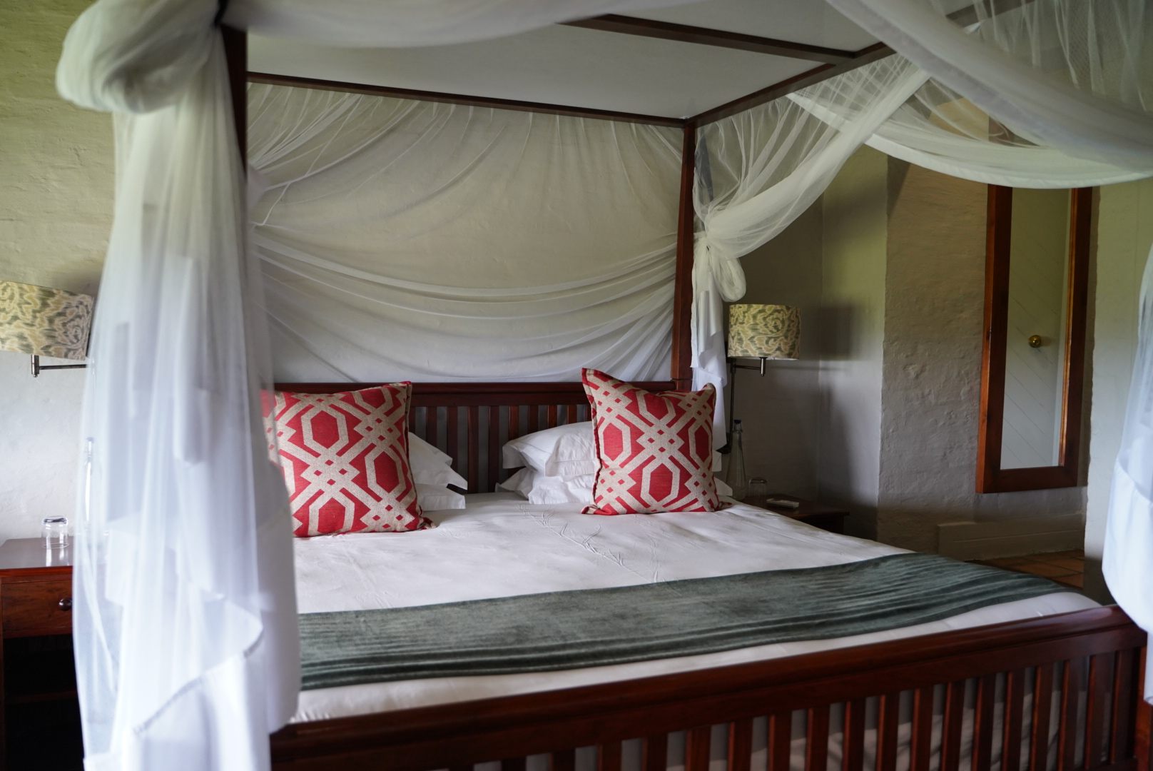 客室はインテリアもアフリカらしいデザインなのが魅力的で、ベットはなんと天蓋付きでした。