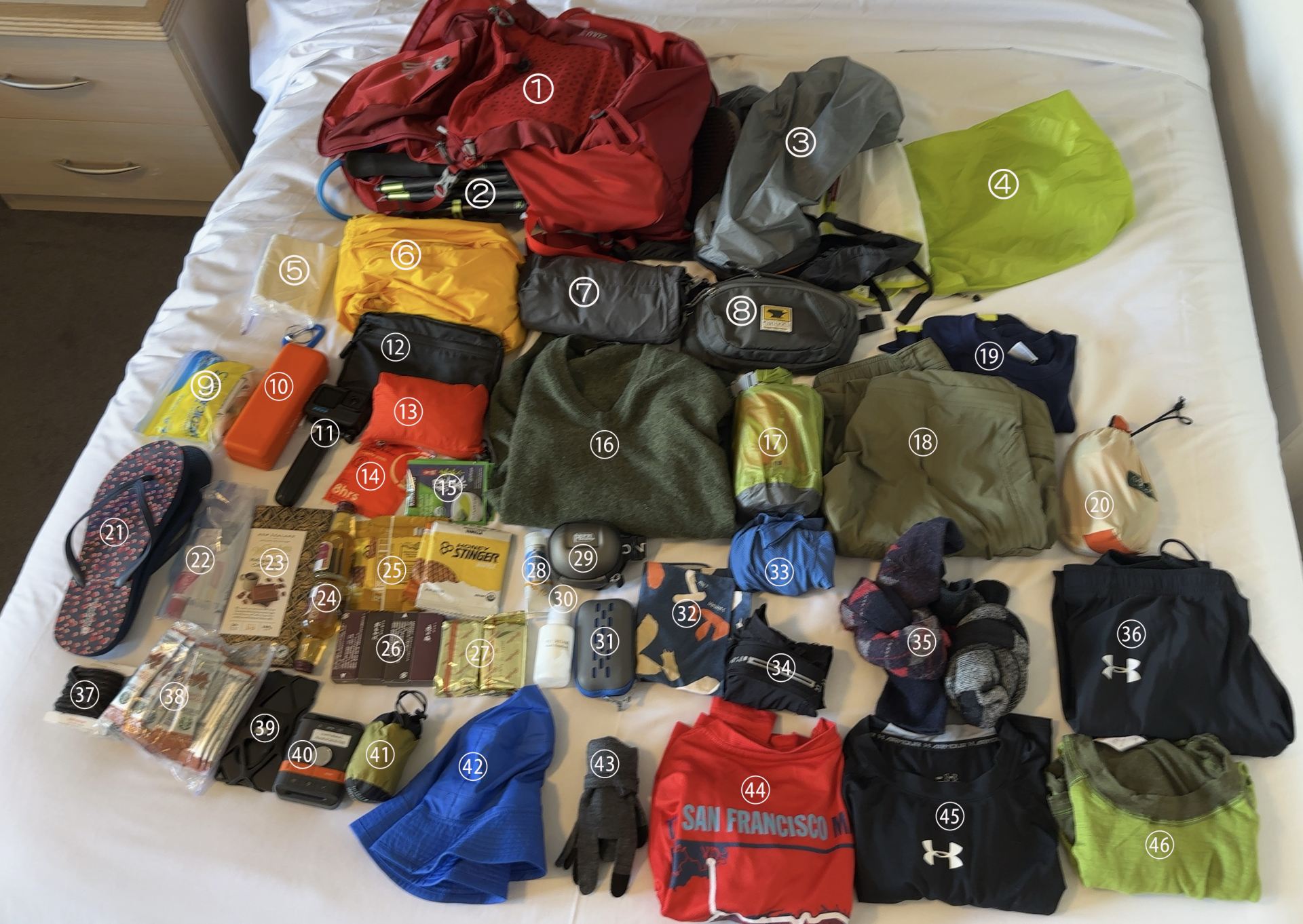 1.Ultimate Hikesを利用する場合、毎日洗濯/乾燥が可能なので、下着・ソックスの予備は1組で十分です。私は2組持っていきましたが、全く不要でした。