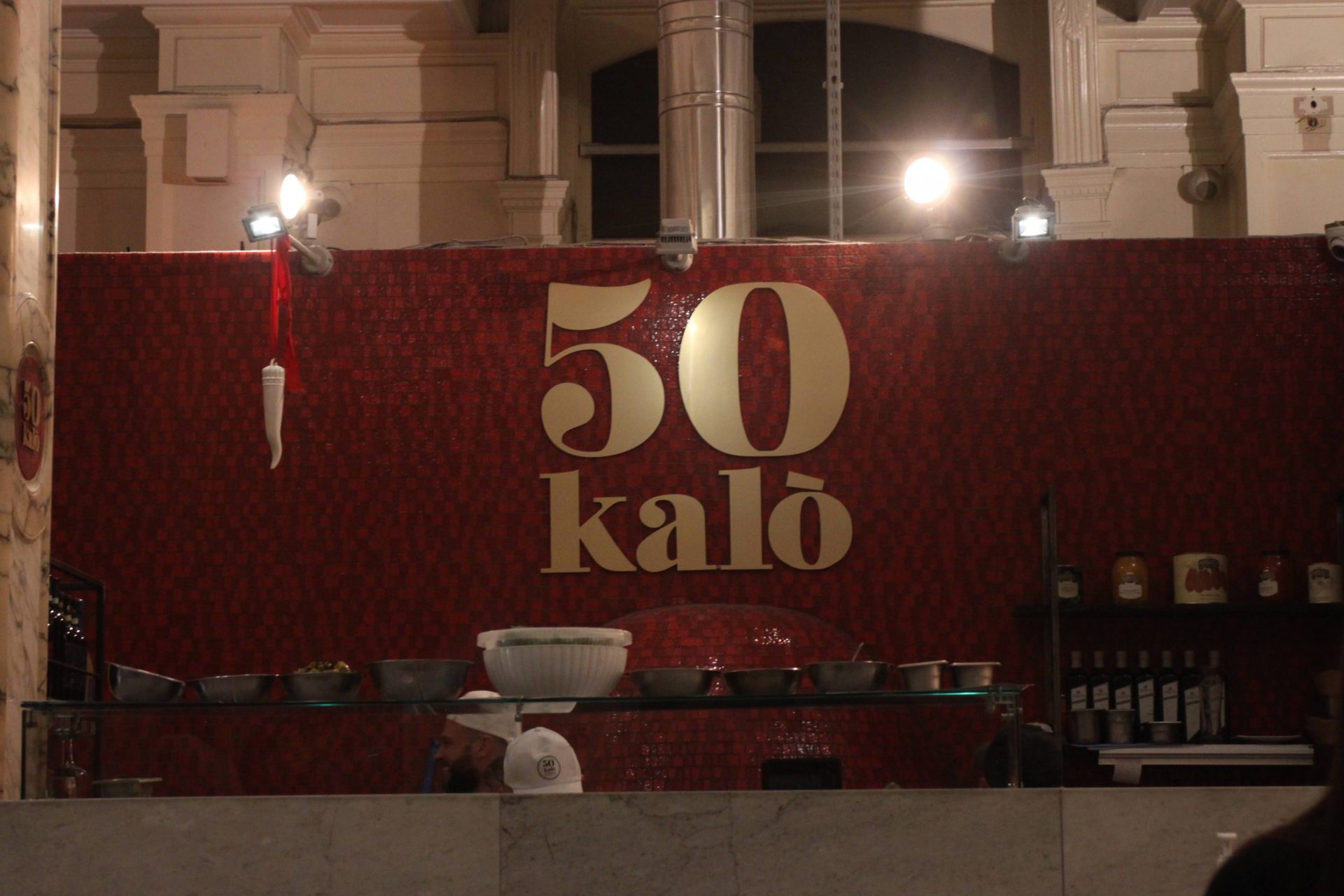 レストランの中に入ると目に飛び込んでくる大きな店名「50 Kalò」の文字。