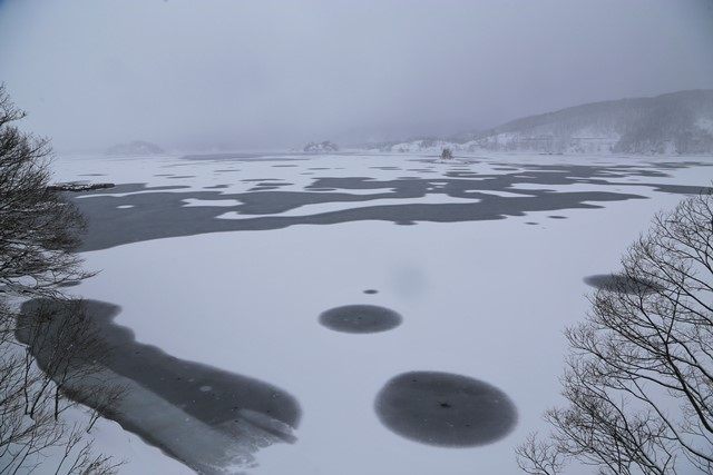 結氷が進む桧原湖は、氷紋や雪紋が日に日に表情を変えていきます。