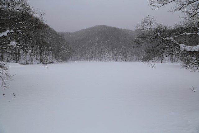 打って変わって、こちらは全面結氷の曲沢沼の様子です。