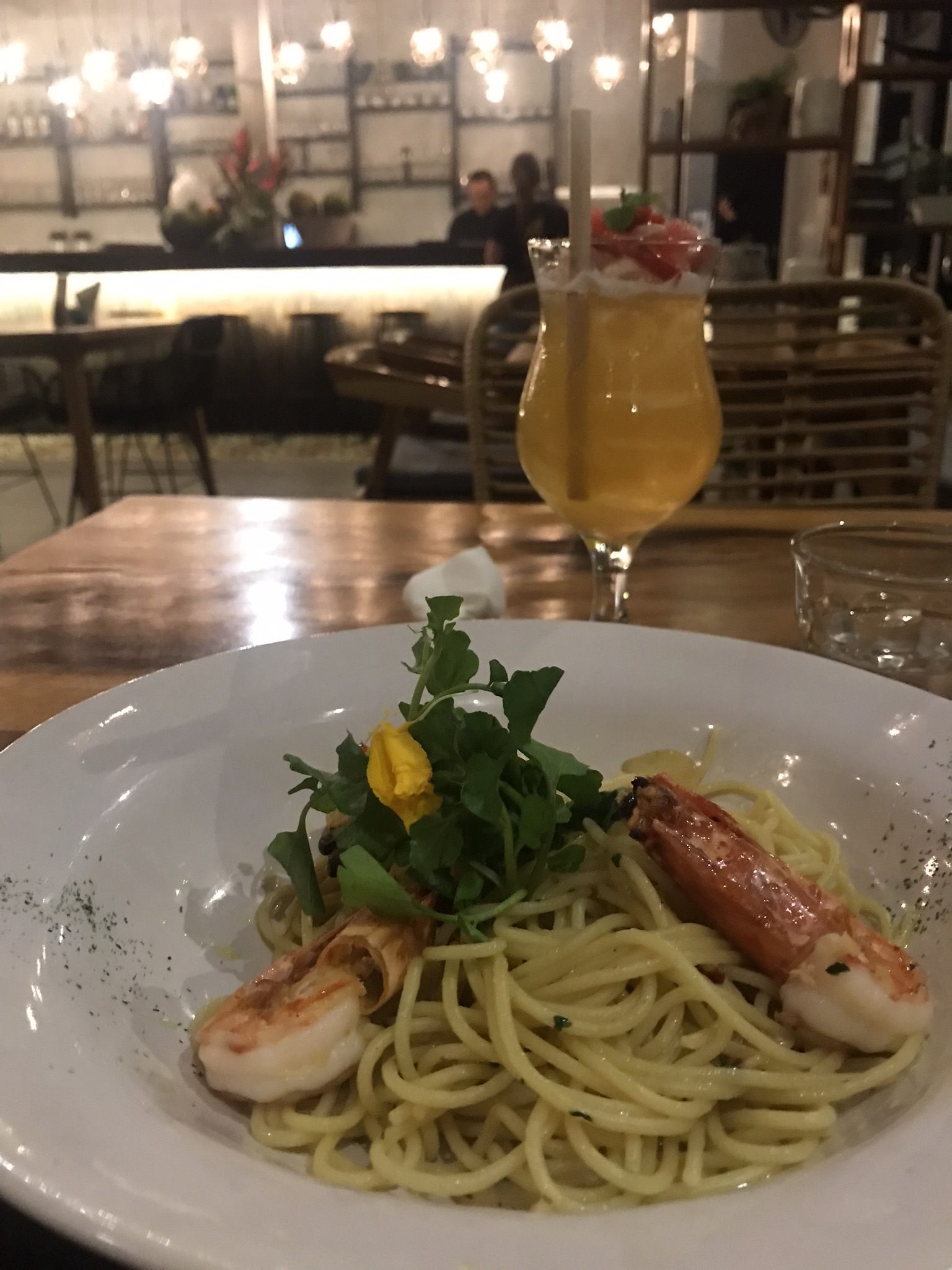 今回私はパスタを。そして、カクテル、デザートを注文。