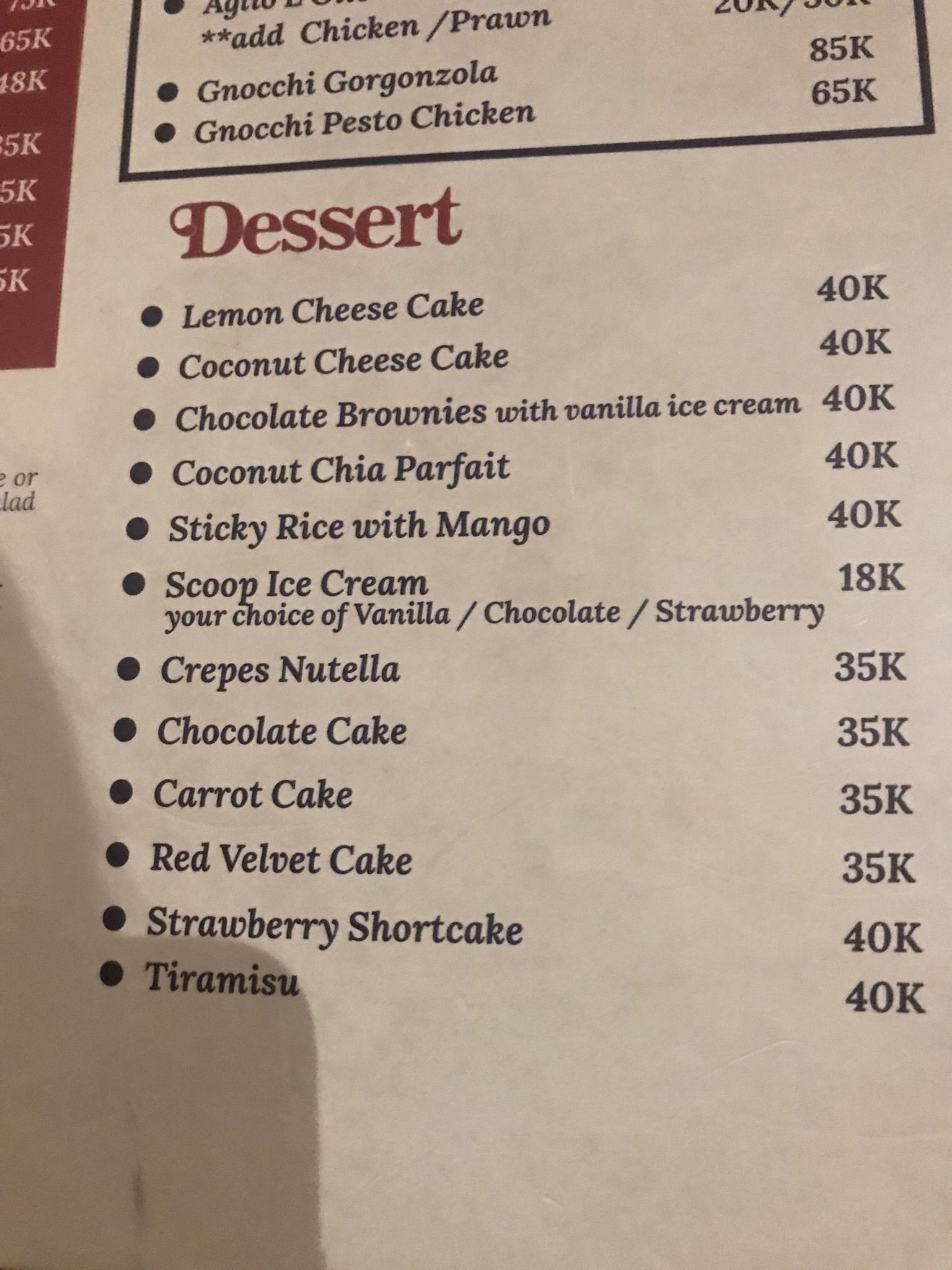 デザートも豊富。本日は『Coconut chia parfait』を選びました。