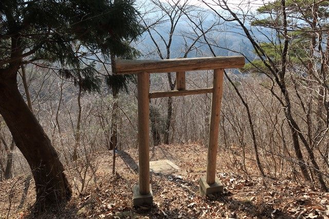 先ずは出戸羽山へ。羽山稜線上の肩の如きピークで、石祠が祀られています。