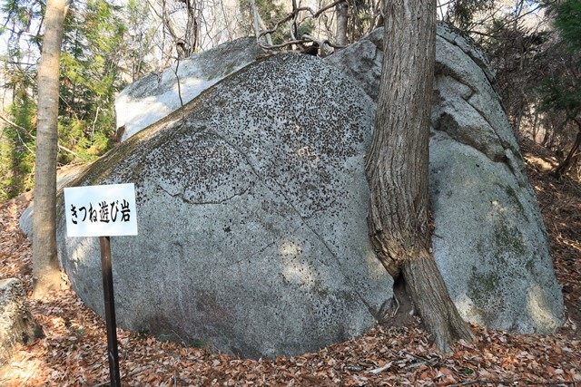 その左側へ下ったポイントにある「きつね遊び岩」幾つかの大岩や奇岩群を見ながら登山口へと戻ります。