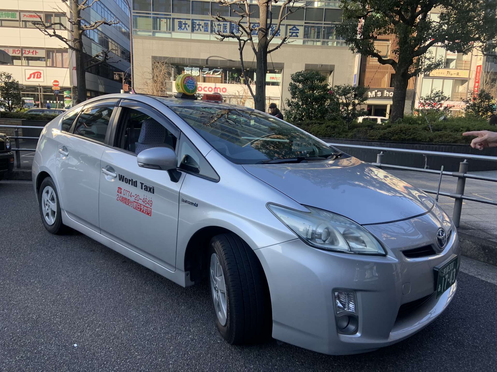 予約時間までに、JR京都駅京都グランヴィアホテル前/タクシー降車場所ロータリーへ行くと、ワールドタクシーが迎えに来てくれてます。では素晴らしい旅に出発です。