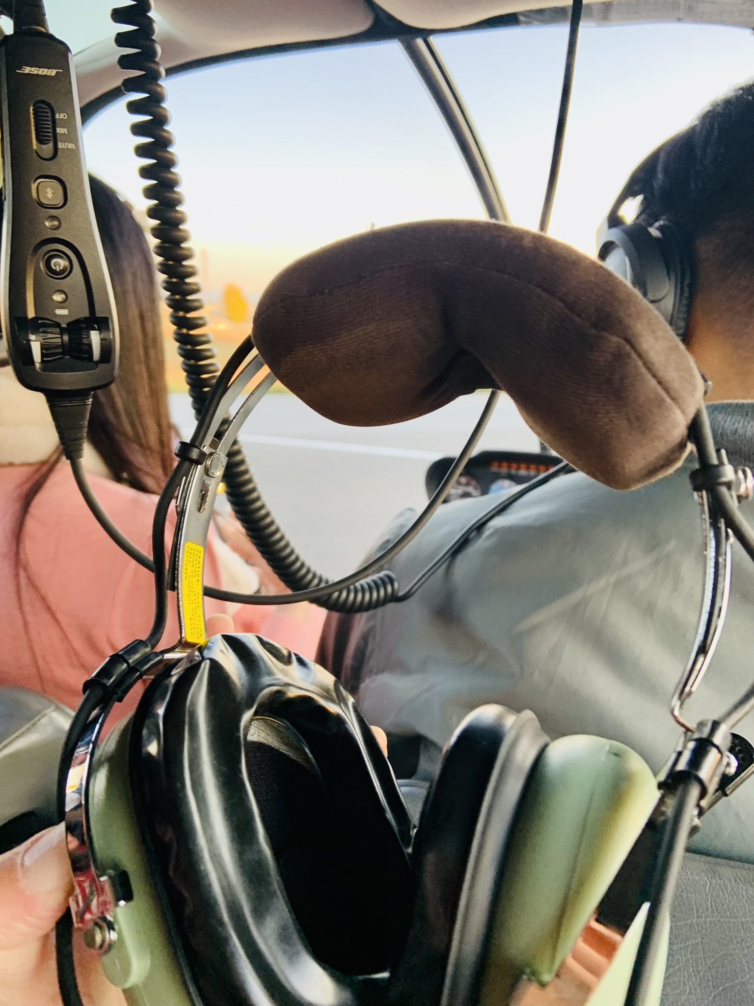 搭乗後、シートベルトをしっかりと締めます。機内で防音ヘッドセットを装備、マイクを通じお互いの声はクリアに聞こえます。搭乗者全員が窓側に着席できます。安全飛行の為、席の移動はできません。