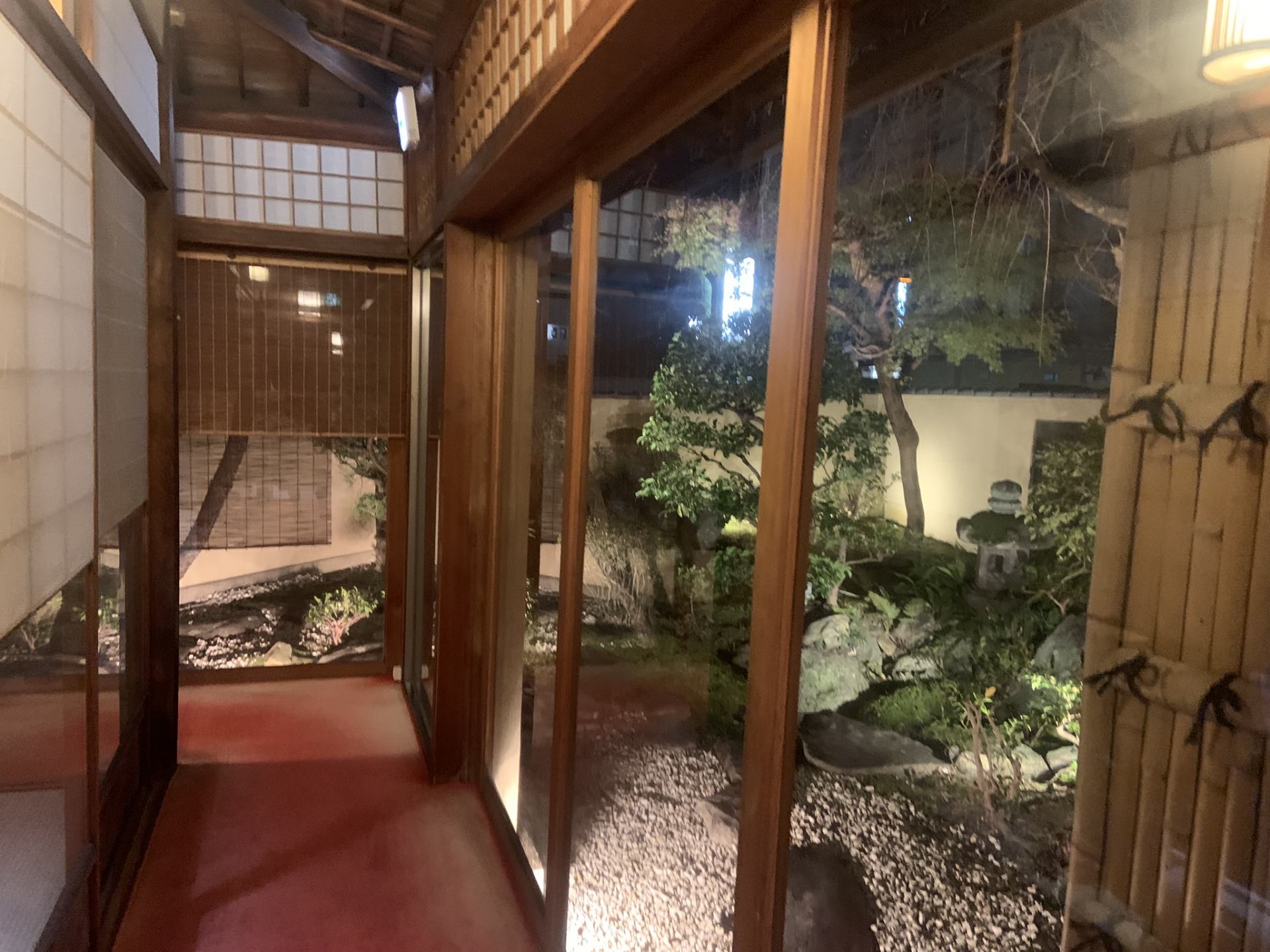 呉服屋さんの大きな居宅を改造したお店です。鞍馬石(京都市北部の鞍馬で産出される花崗岩の一種)が使われた四季が楽しめる素晴らしい庭があります。春は桜、秋は紅葉などが楽しめます。