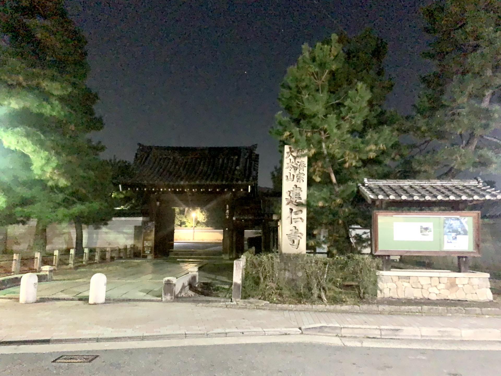 「八坂通り燕楽(えんらく)」をでると建仁寺の南門があります。清水寺にも近く、京都の歓楽街”祇園”は徒歩5分です。京都の風情漂う中、美味しい京料理が味わえ、観光にも便利なお店です。