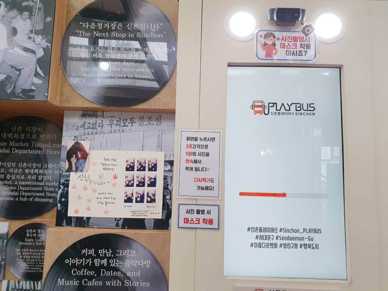 新村に、プレイバスという無料でVRを通じてソウル旅行が楽しめたり、昔の新村大学街で大学生たちに人気だった音楽を鑑賞できたりする観光案内所を兼ねた場所をご存じですか?