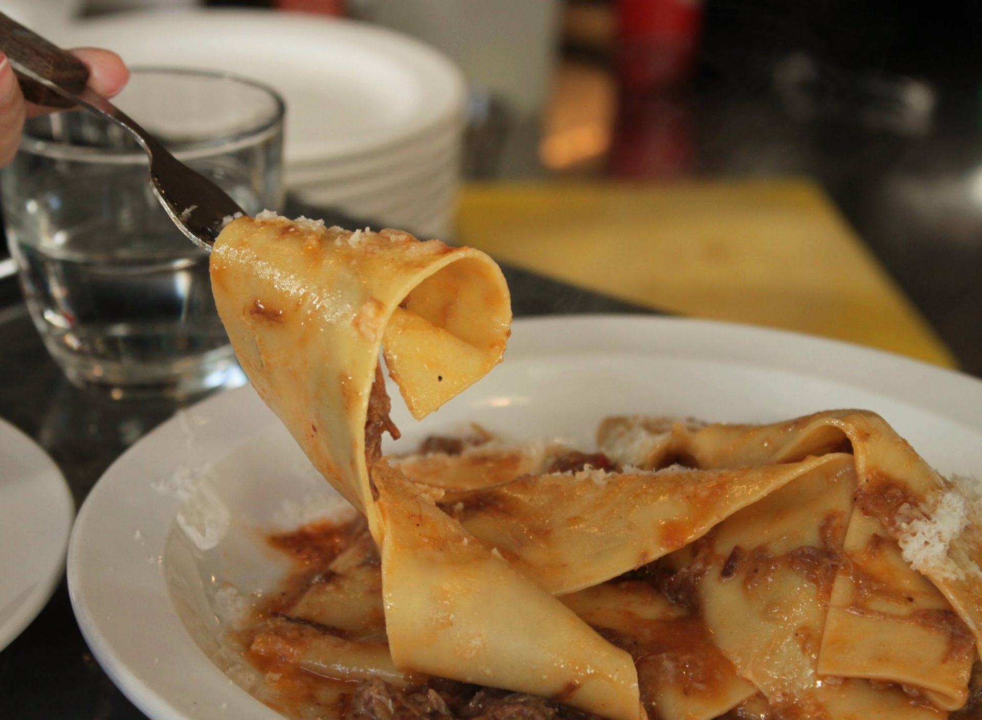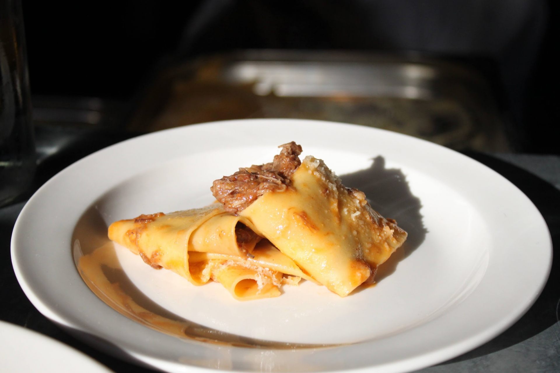 こちらはパッパルデッレ(幅広のリボン状のパスタ)の牛すね肉のラグーソース。