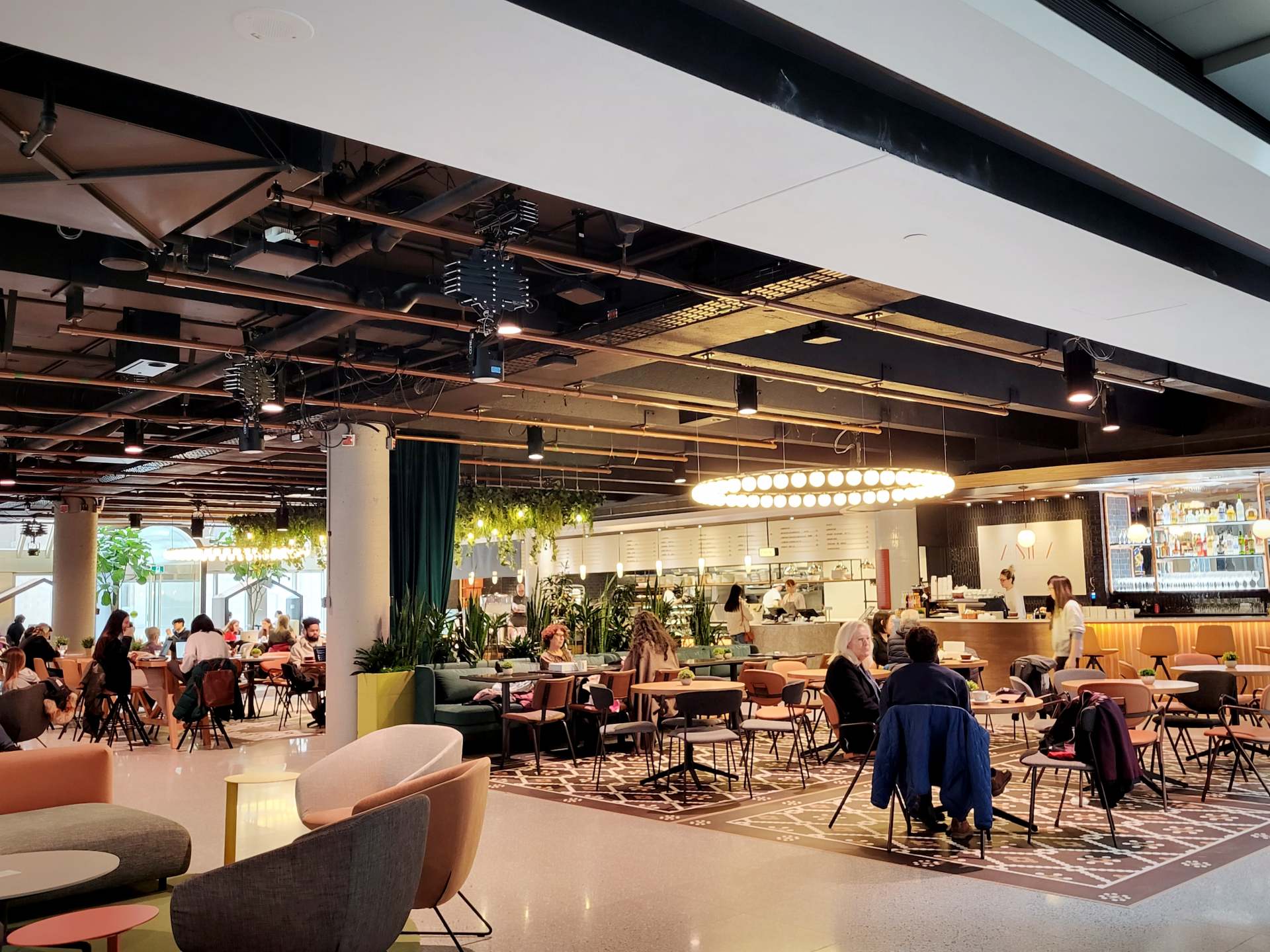 アトリウムの先がカフェスペースになっています。