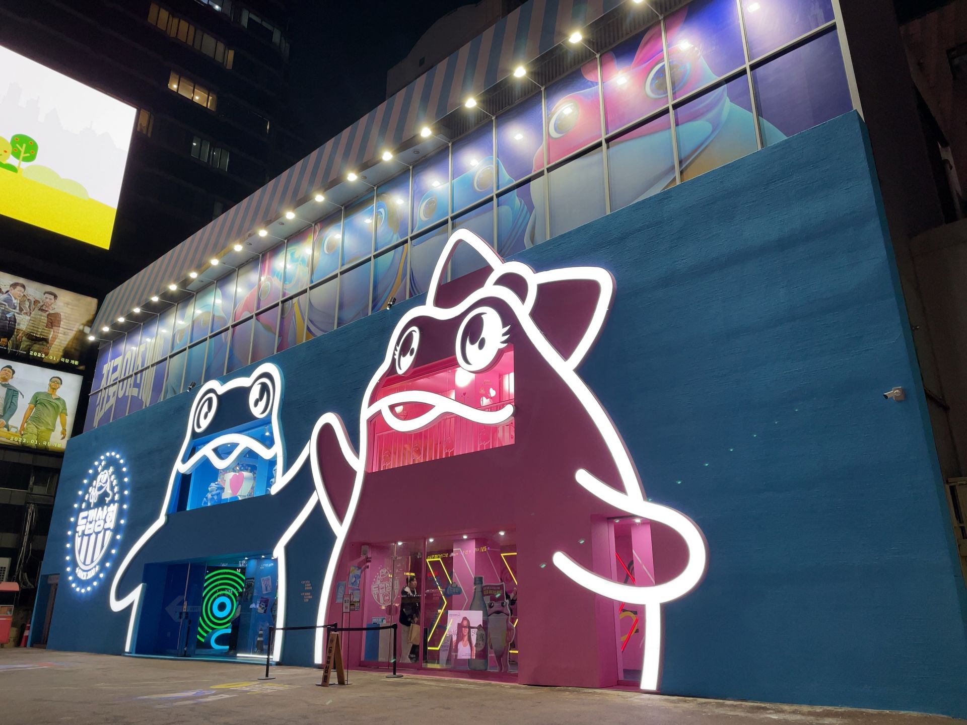 ちょっと歩くと、ひときわ目立つカエルの壁が見えました。ヒキガエル商会(ドゥコプサンフェ・두껍상회)という眞露焼酎のポップアップストアがありました。23年3月5日までの限定ショップだそうです。