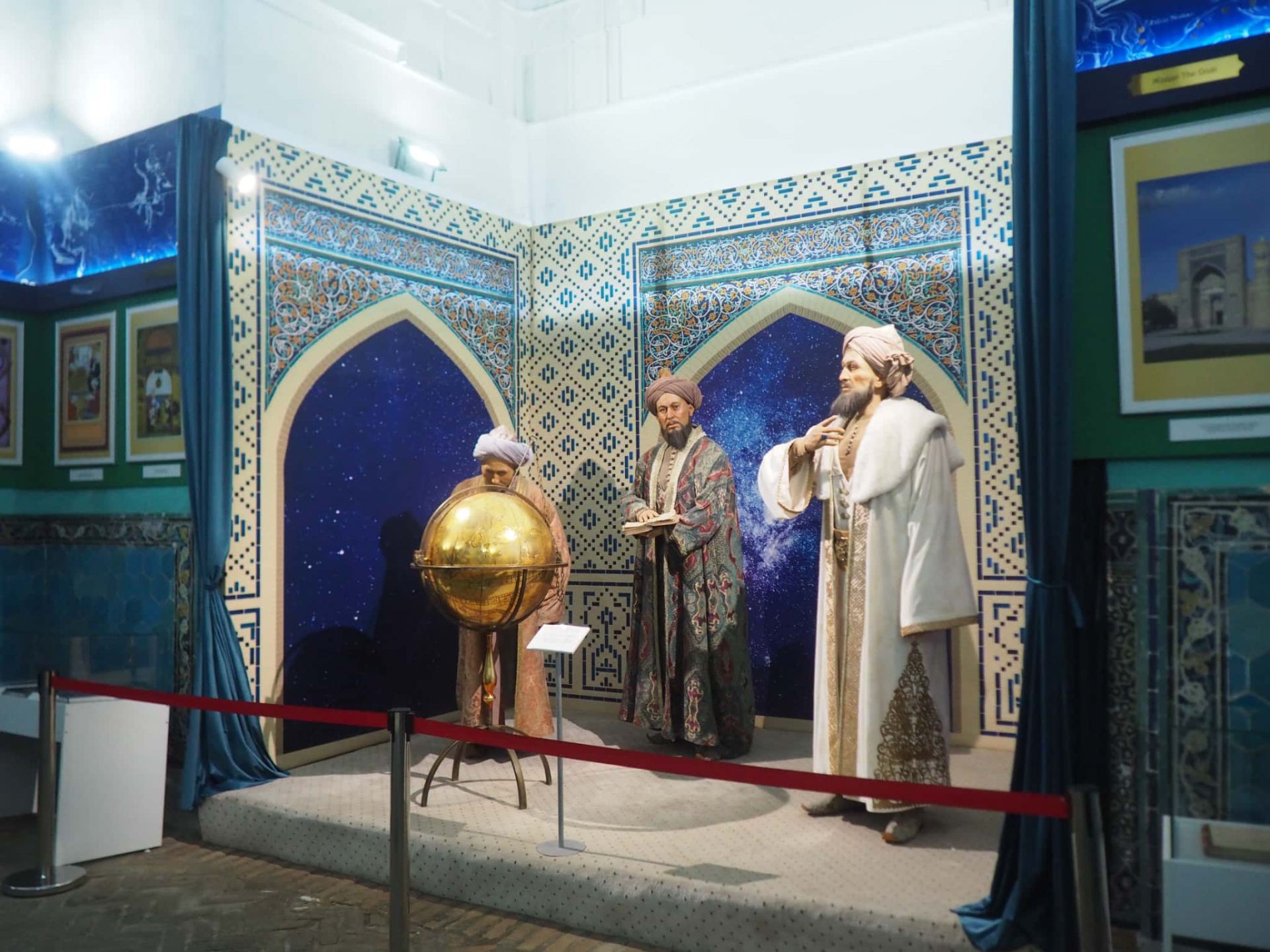 かつてモスクとして利用されていたとされる最奥部の広いスペースは現在博物館となっており、このメドレセで使われていた物や当時のモザイクタイル、ウルグベクの造った天文台、六分儀などが展示されています。