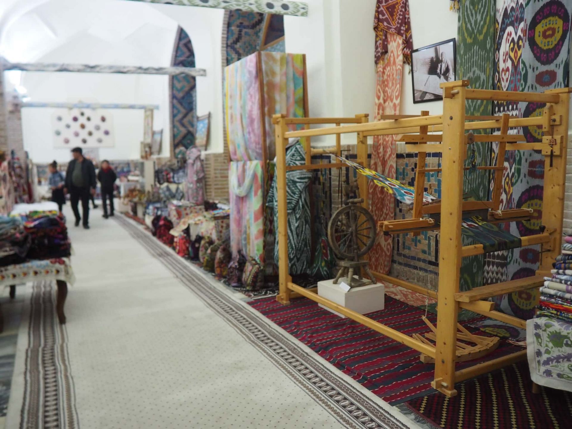 そして礼拝所左側はお土産屋さん。布地を織る機織り機も展示されています。他のメドレセと異なる1階建てのフジュラも、やはりそれぞれ土産屋になっています。