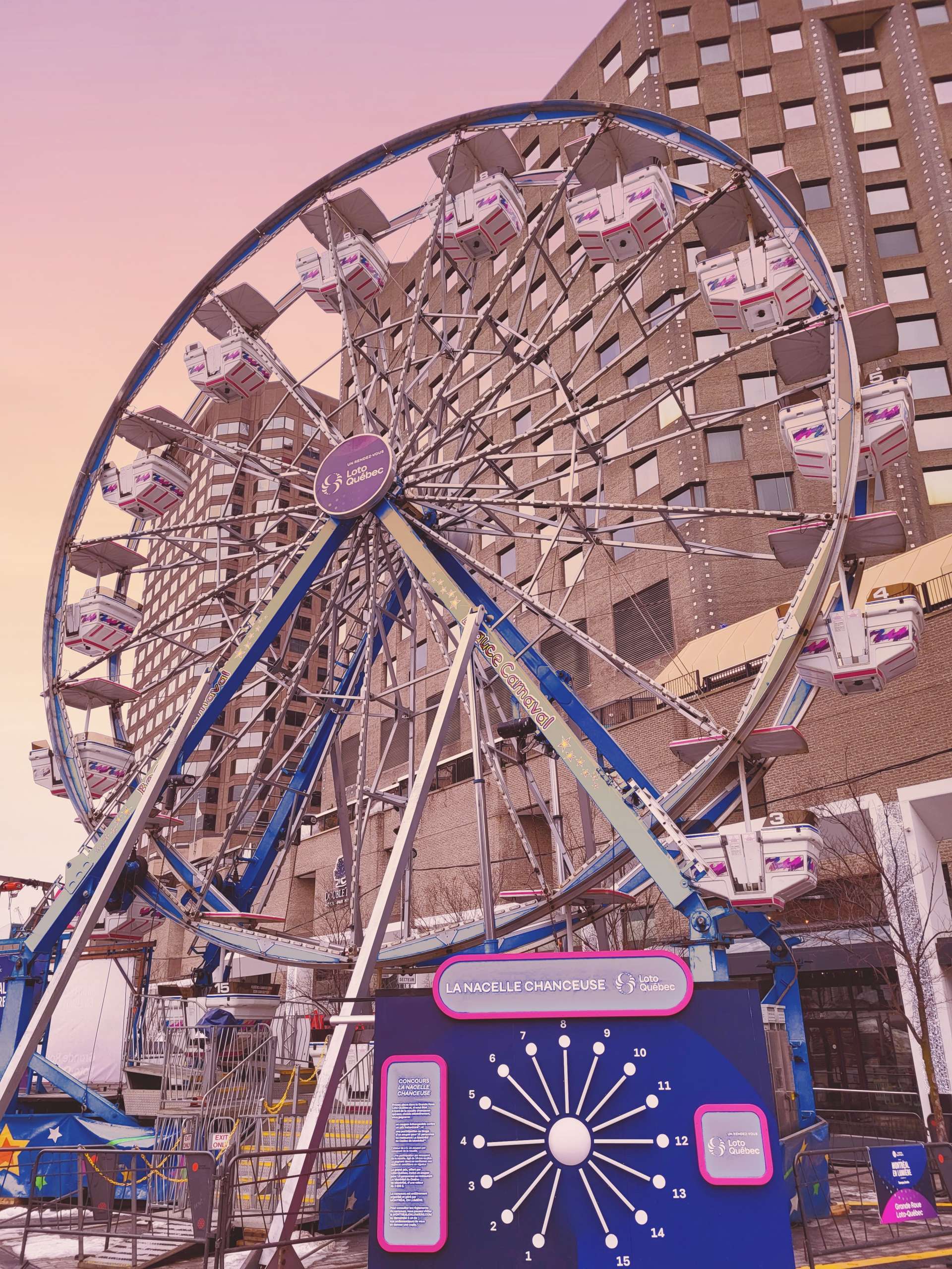 Place des arts(プラス・デザー)にあるComplexe des jardins(コンプレックス・デ・ジャルダン)というショッピングセンターの前にある大観覧車。