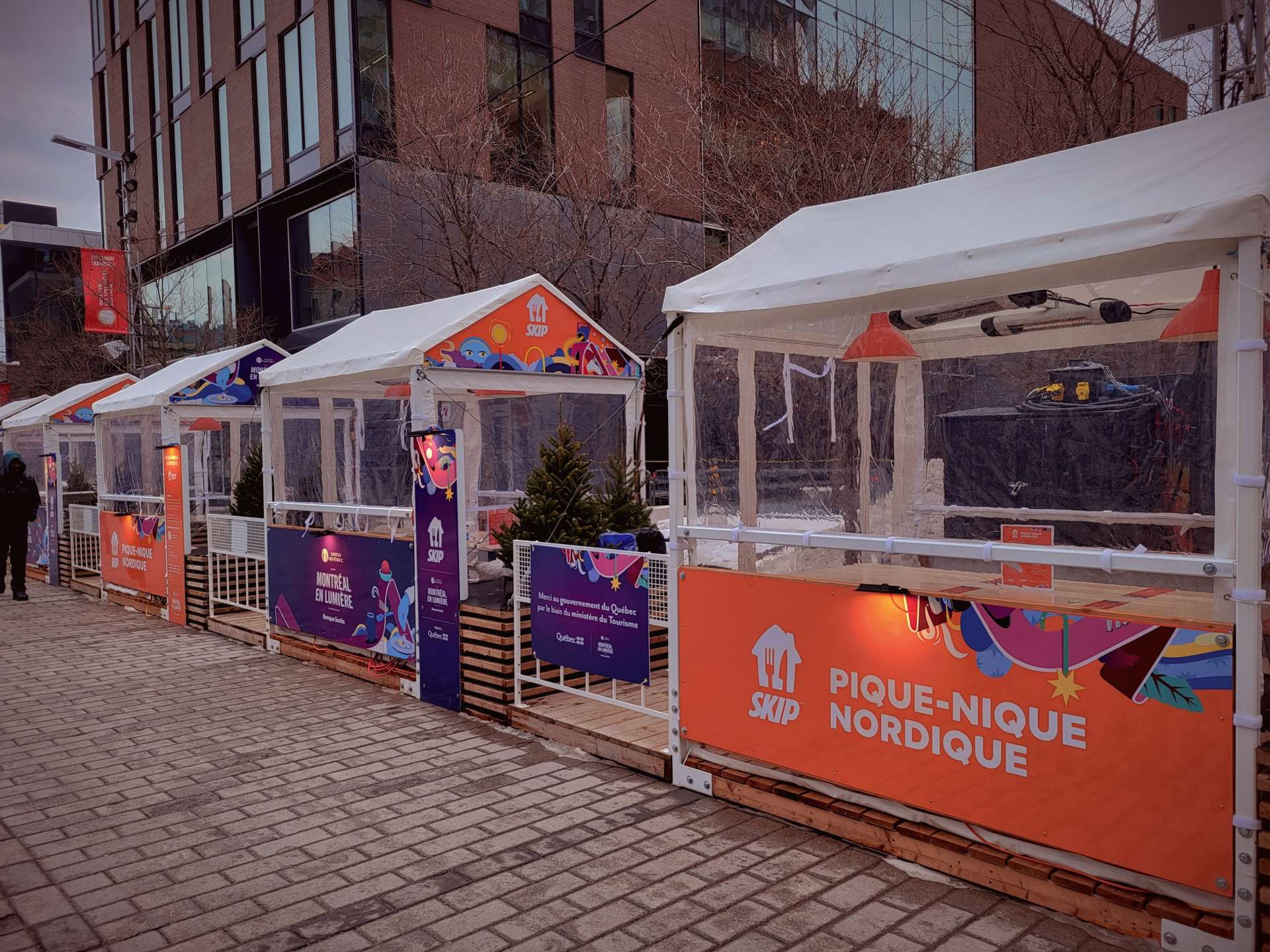 SAQ(ケベック州の酒屋)提供のビストロや、「Skip」というアプリケーションで注文した食べ物を暖房の効いた小屋で食べることもできます。