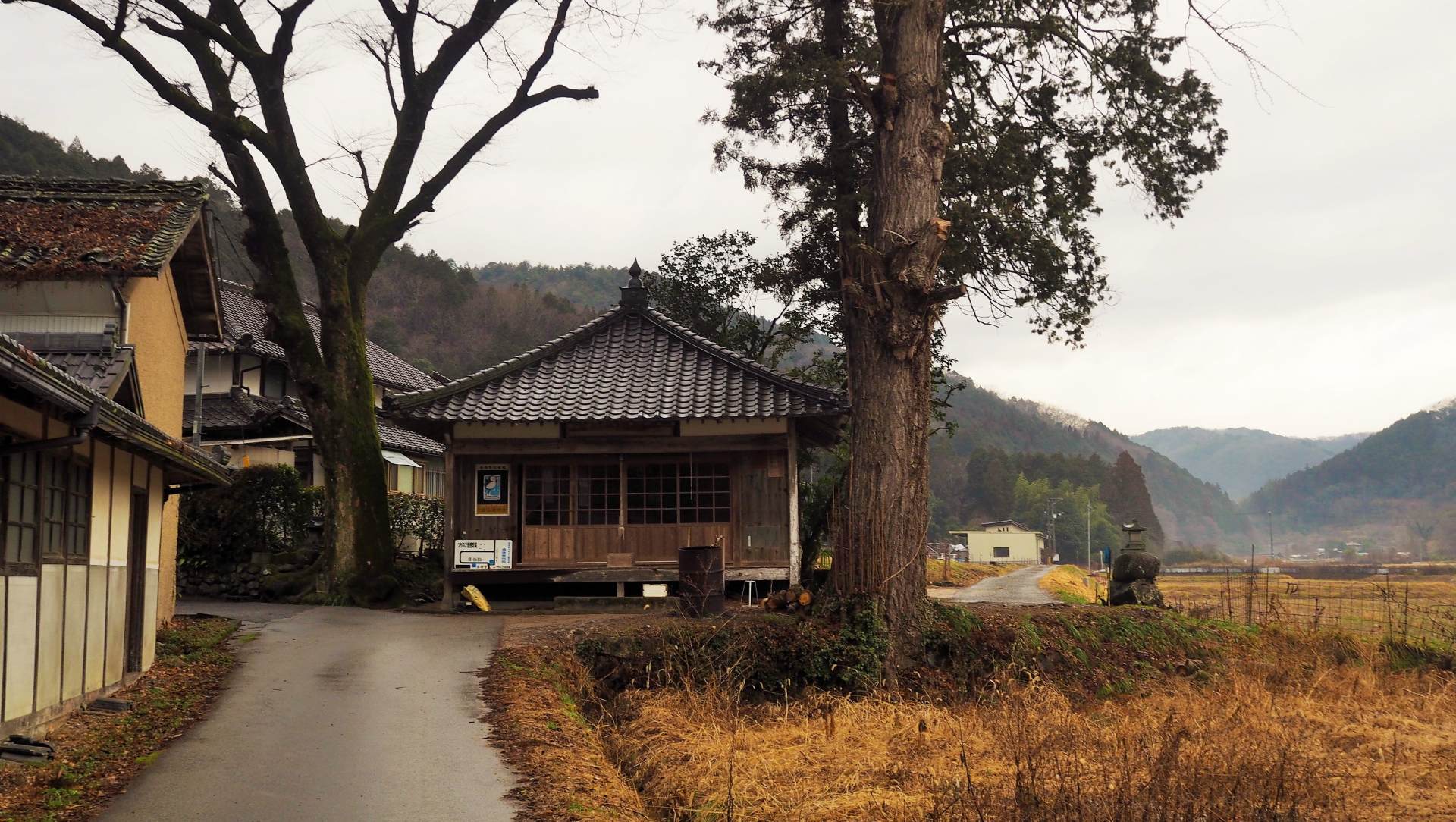 手配書のすぐ傍には、雰囲気のいいお堂が建っていて、なにか地図のようなものが見えます。