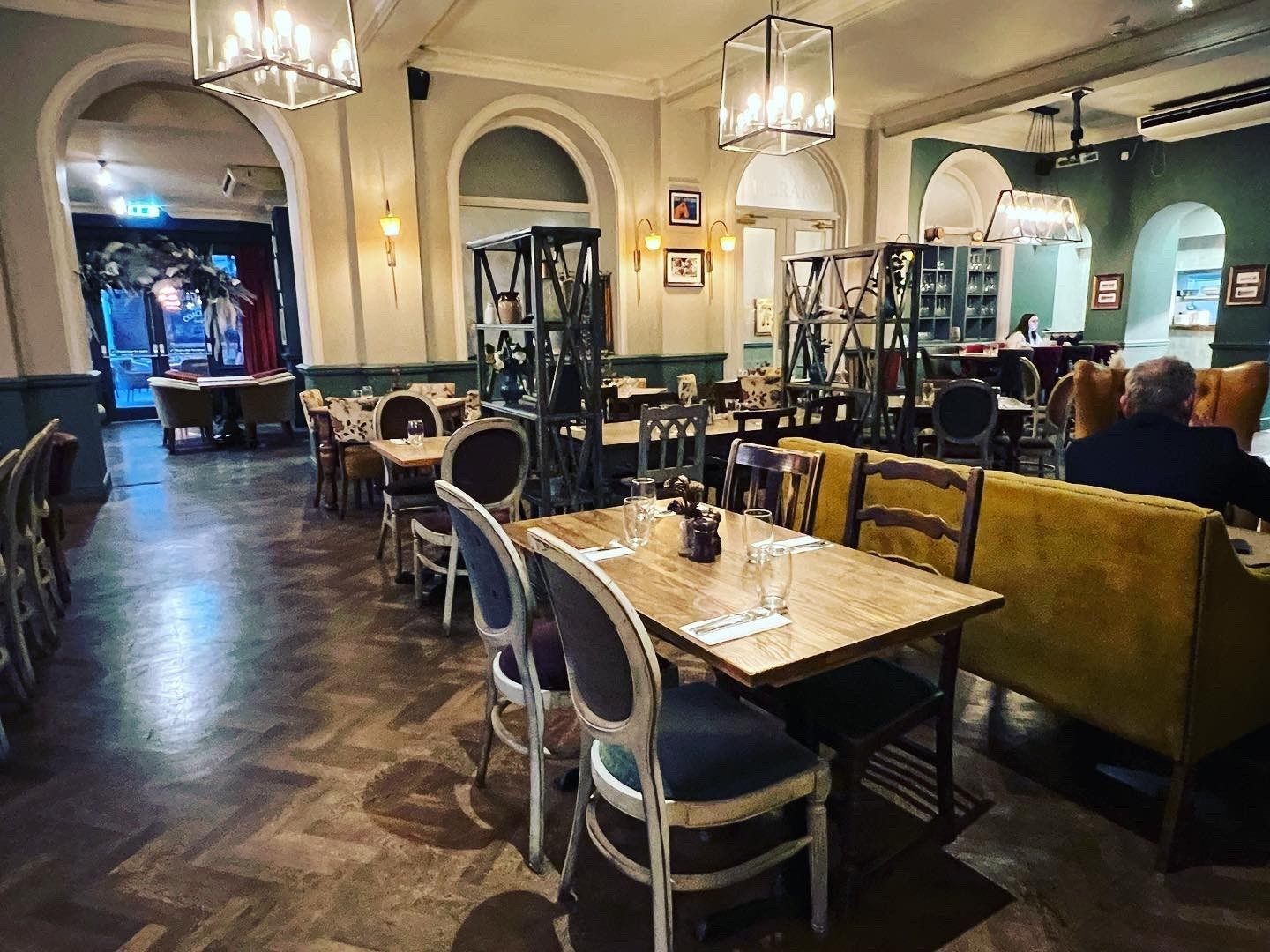 筆者がこのパブをおすすめする理由は、季節や時間帯によって移り行くビレッジの様子を眺められるテラス席と、暖炉を兼ね備えたぬくもりのあるウッド調の店内、どちらも異なる雰囲気で甲乙つけがたいくらい素晴らしいからです。テラス席に座ると日中は隣接する乗馬クラブの人々が馬にまたがって近くの広い公園「ウィンブルドン・コモン」へと向かう優雅な姿を目にします。夜にはライトアップされたロマンチックな時計台を横目にしっとりとエールを飲むことができ、同じ席からでも時間によって全く違うビレッジの日常を垣間見れます。日没時間が遅い夏の時期には、仕事帰りにテラス席でスパークリングワインやピムスを片手に日光浴を楽しむ人たちも多いですよ。