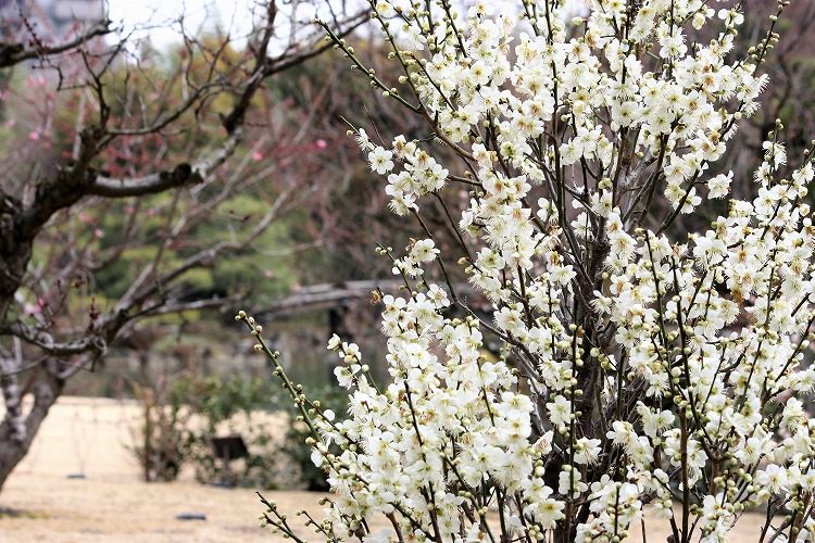 太鼓橋を渡って進むと境内奥に梅園があります。