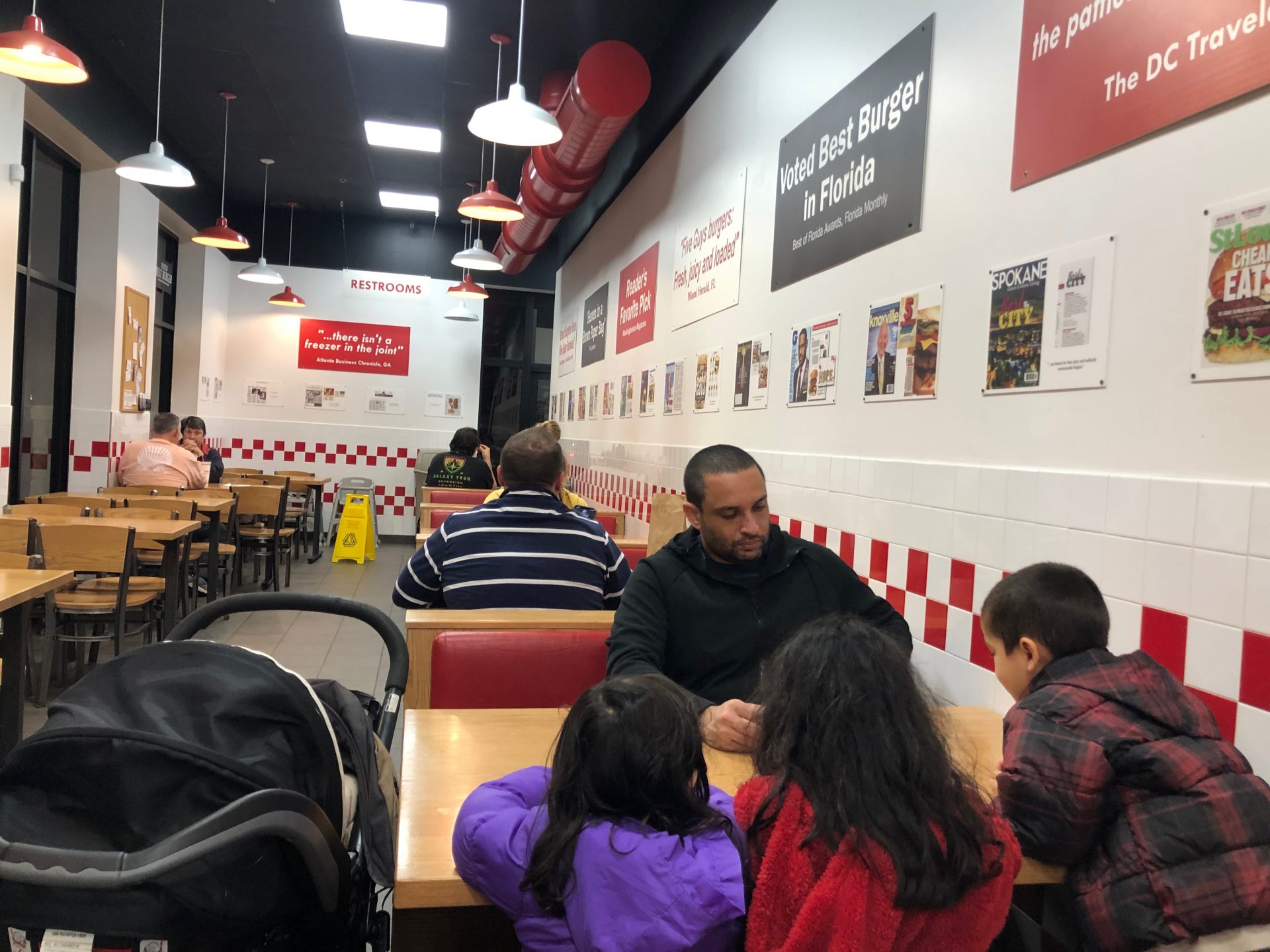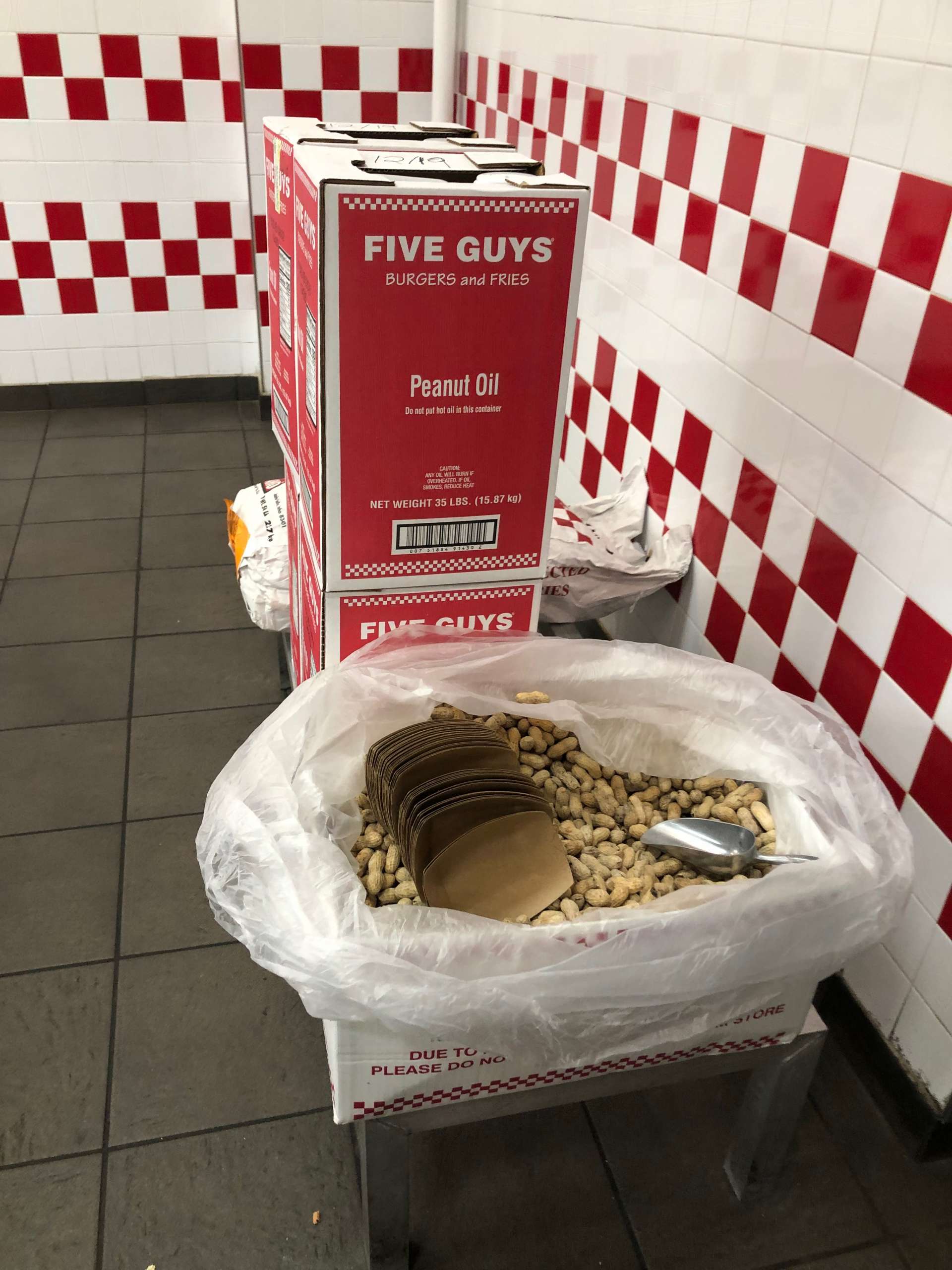 その数あるバーガーショップの中で私が最近お気に入りのFIVE GUYSはピーナッツ食べ放題、それからバーガーのトッピング無料という特徴のあるファーストフード店です。