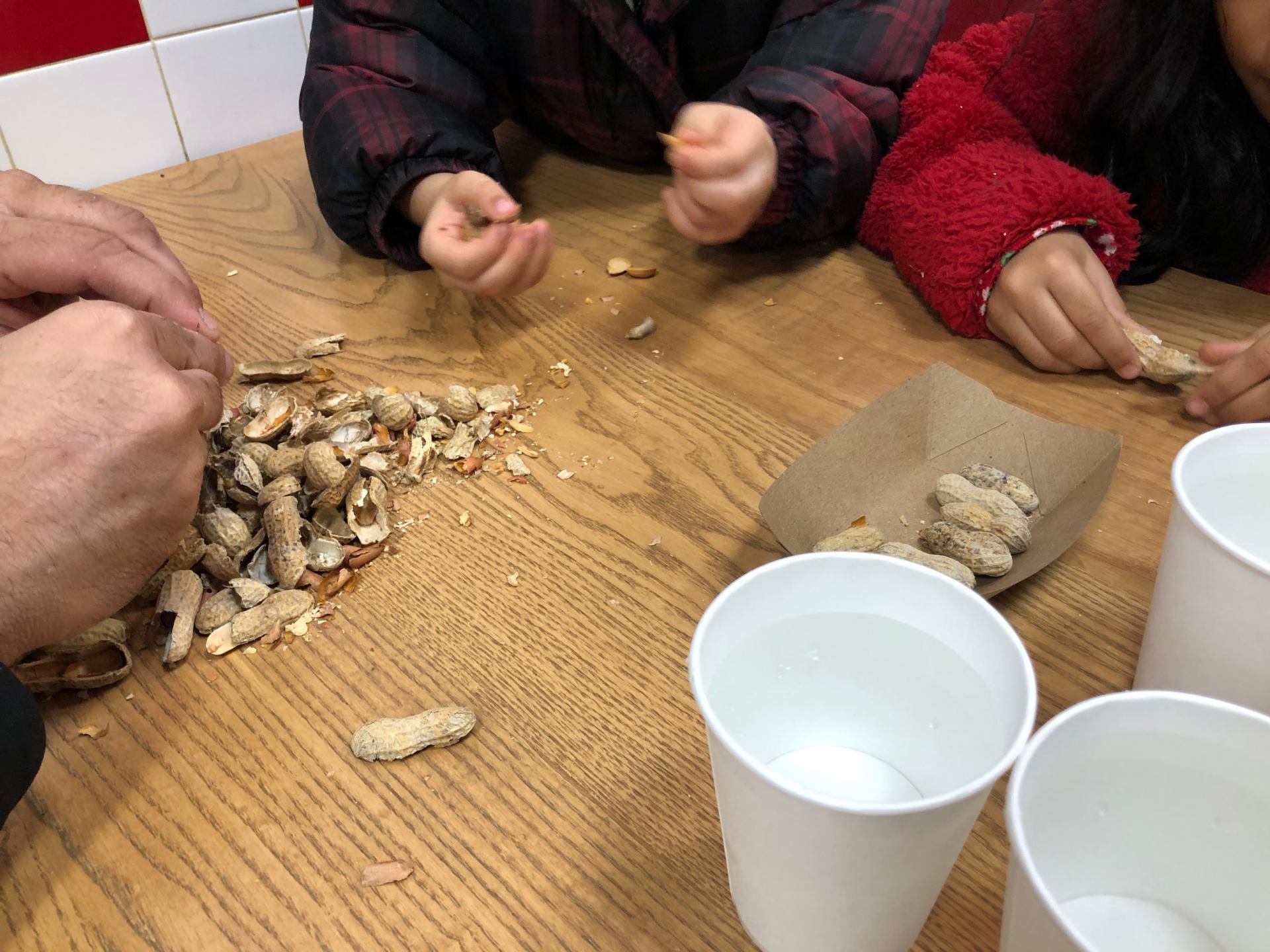 バーガーができるまでピーナッツを食べて待ちます。水が欲しい場合は水用のコップをもらえば無料で飲めます。