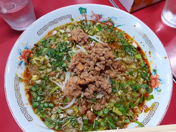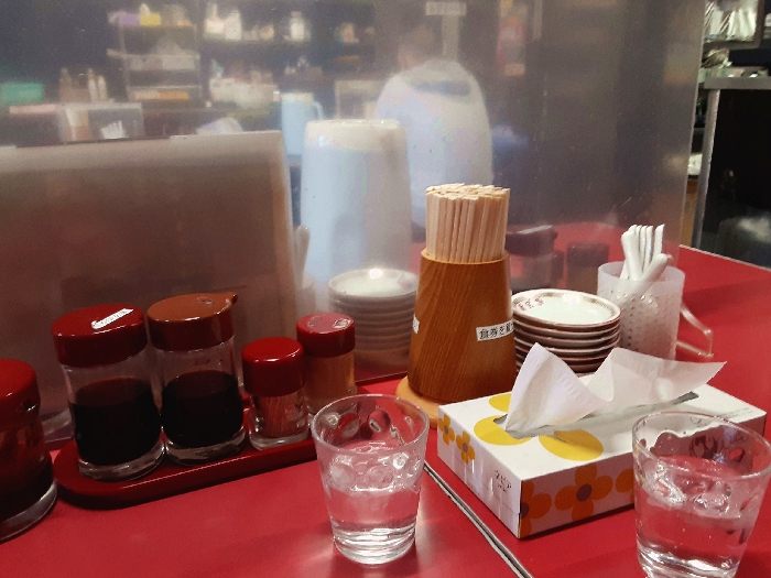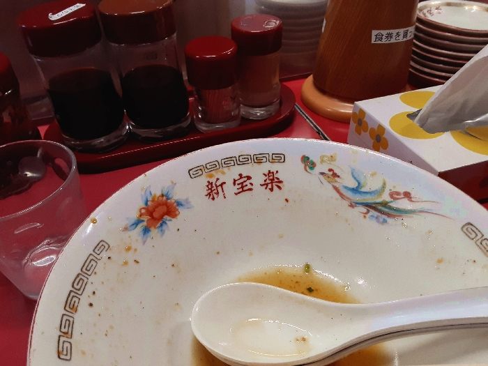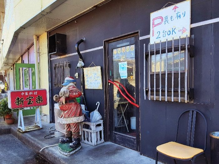ということで、個性派ラーメンを求めて向かった先は、米子市(よなごし)にある「中華飯店 新宝楽」ファンキーなサンタクロースが目印のお店で店先からふんふん食欲が増す香りがして気持ちが高まる!!さぁ、食券を買ったら着席してわくわく待つばかり。