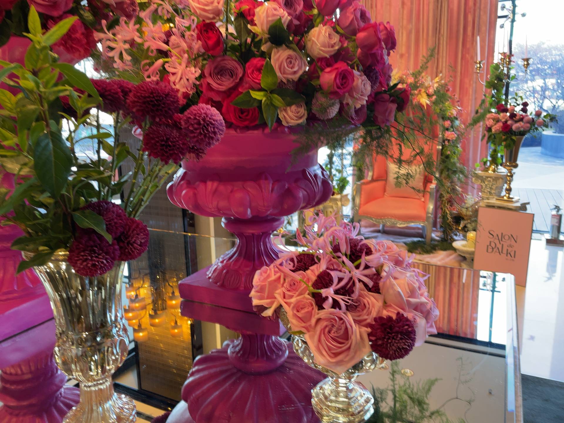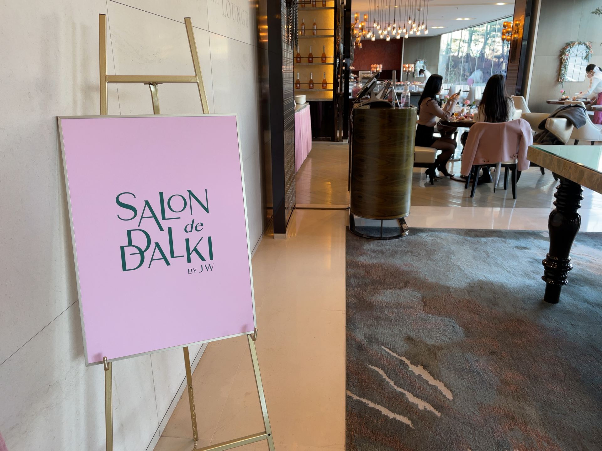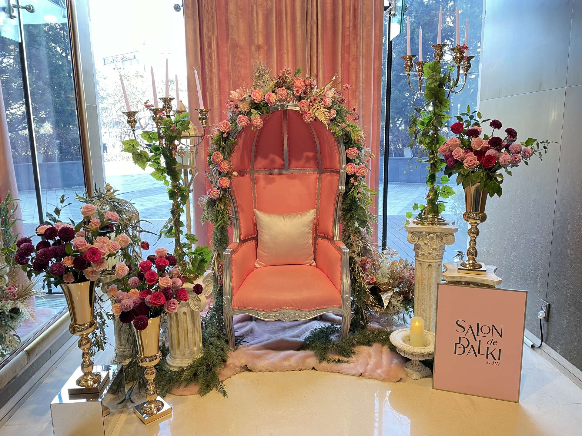 JWマリオット東大門スクエアのいちごビュッフェのタイトルは『サロン・ド・タルギ by JW』タルギとは韓国語でいちごのことで韓国でも人気のフルーツです。入口はこのようにピンクカラーのチェアやお花で華やかな雰囲気でした。SNS映えするので、写真を撮るために行列ができていました。