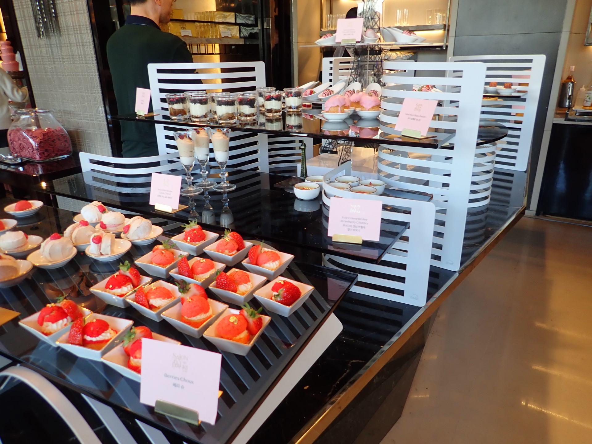 JWマリオット東大門スクエアのいちごビュッフェはいちごデザートがメインのビュッフェです。ケーキ、マカロン、ムースなど十種類以上ののいちごのデザートが並んでいました。
