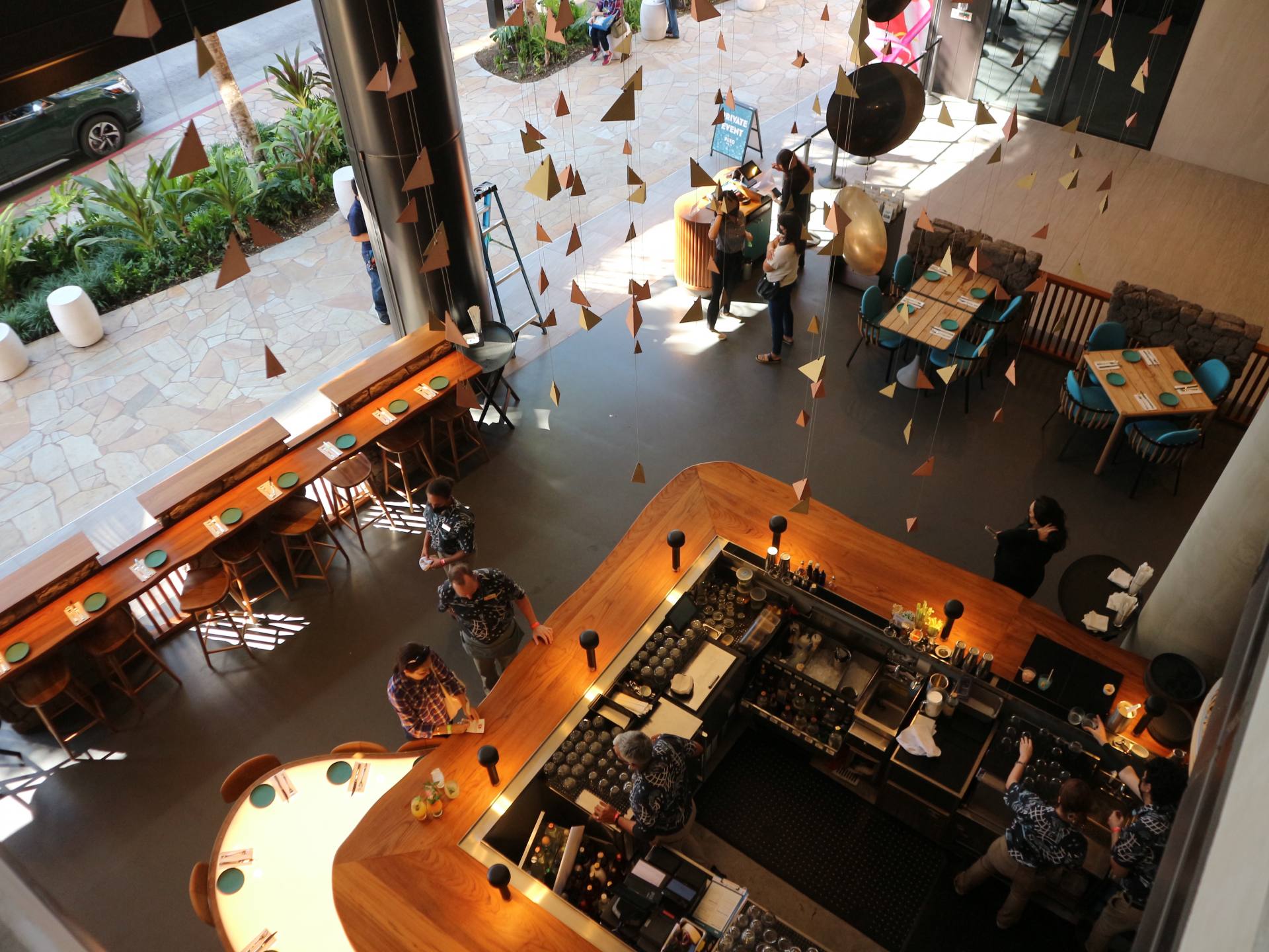 オープンエアーのバーに座ったら、ワイキキの風に吹かれながら、オリジナルカクテルを楽しみたいですね。店内のオープンキッチンのカウンターやテーブル席では、家族や友人とワイワイ食事やドリンクをどうぞ。