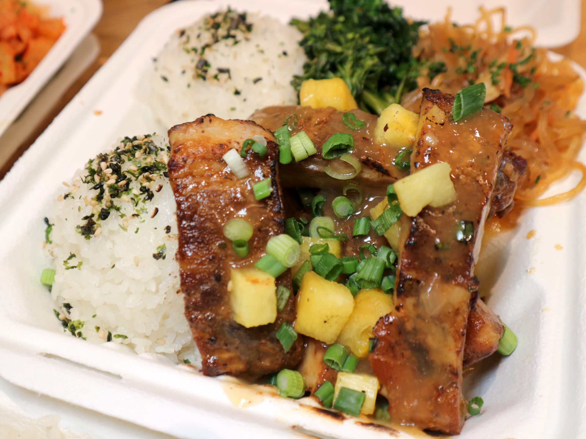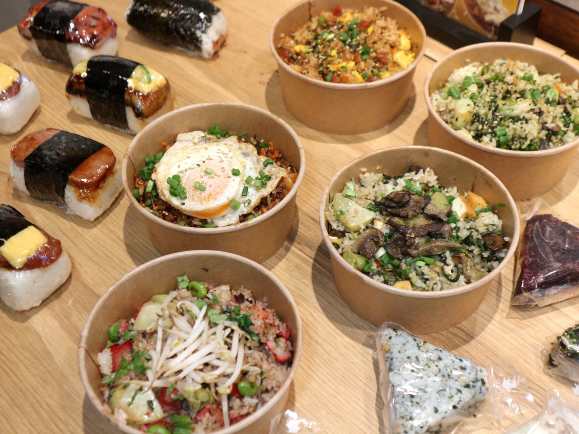 ローカルの人にも人気のライスだけのコーナーもあります。ハワイ料理代表のスパムむすびが、日本のおむすびと一緒に並び、炒飯を目の前で作ってくれるという、とてもインターナショナルなコーナーでもあります。