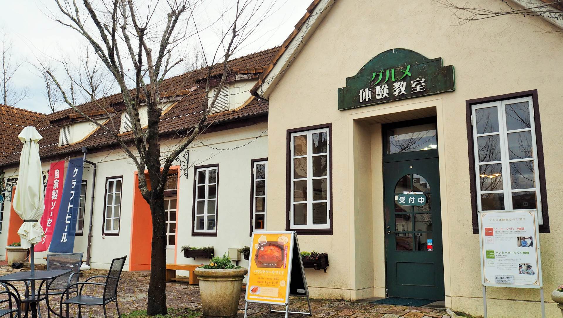 お隣の建物は、自家製ソーセージやパン、バター作りの体験ができます。