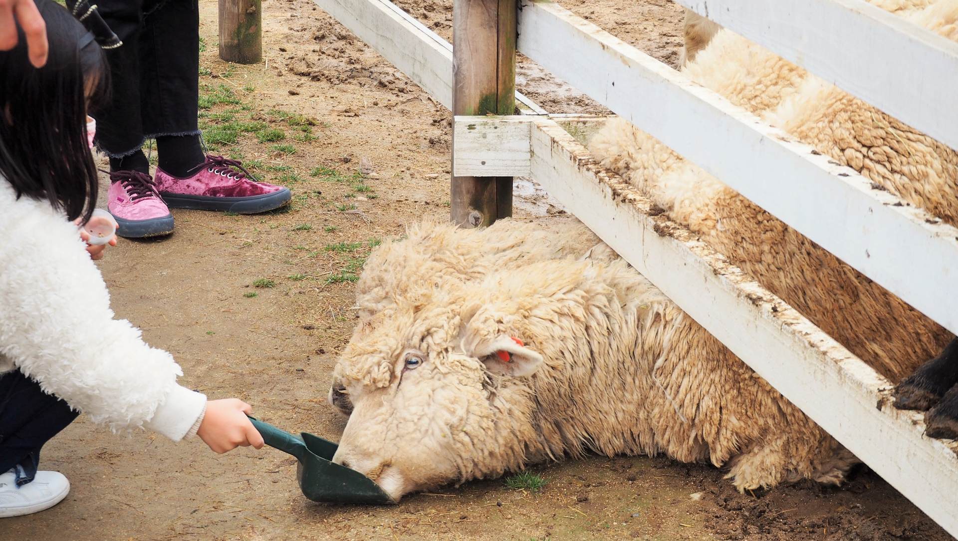 「街エリア」を抜けると「牧エリア」になります。ポニー乗馬や小動物とのふれあいが楽しめます。また、ジャージー牛の乳搾りも体験できますよ。