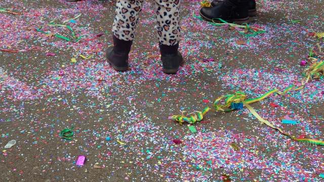 頭の上からコンフェッティ(紙吹雪)をかけられるので