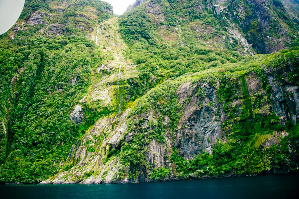 年間降水量が6000mmと多い為、ミルフォード トラックと同じく1000mの切り立った崖が緑で覆われています。その分浸食も進んでいる気もしました。