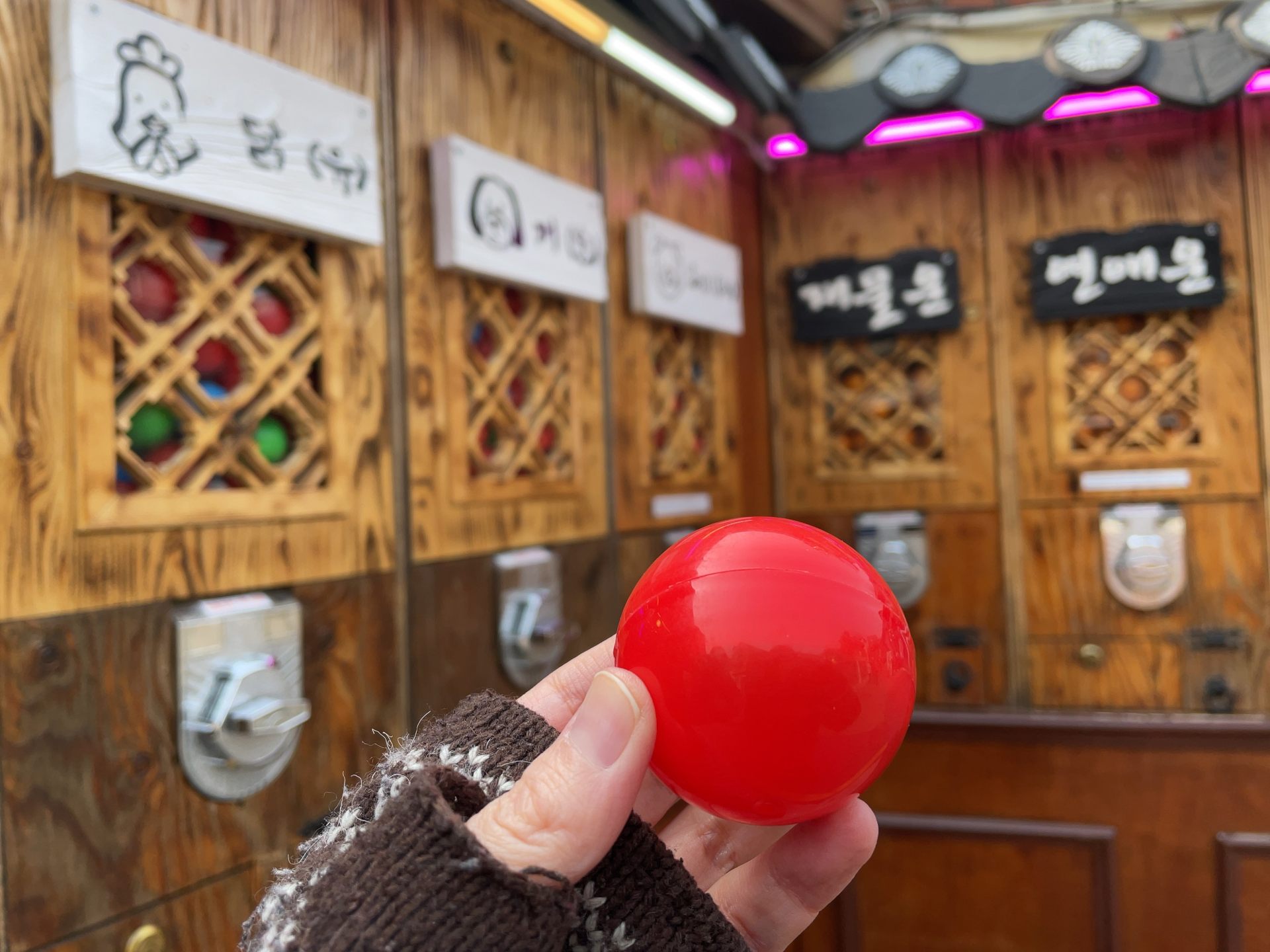 私が見つけた運勢ガチャは仁寺洞(インサドン)、益善洞(イクソンドン)、大学路(テハンノ)、北村洞(プッチョンドン)の4カ所。人が多く通る道沿いにずらりとガチャガチャが並んでいるので、すぐわかります。