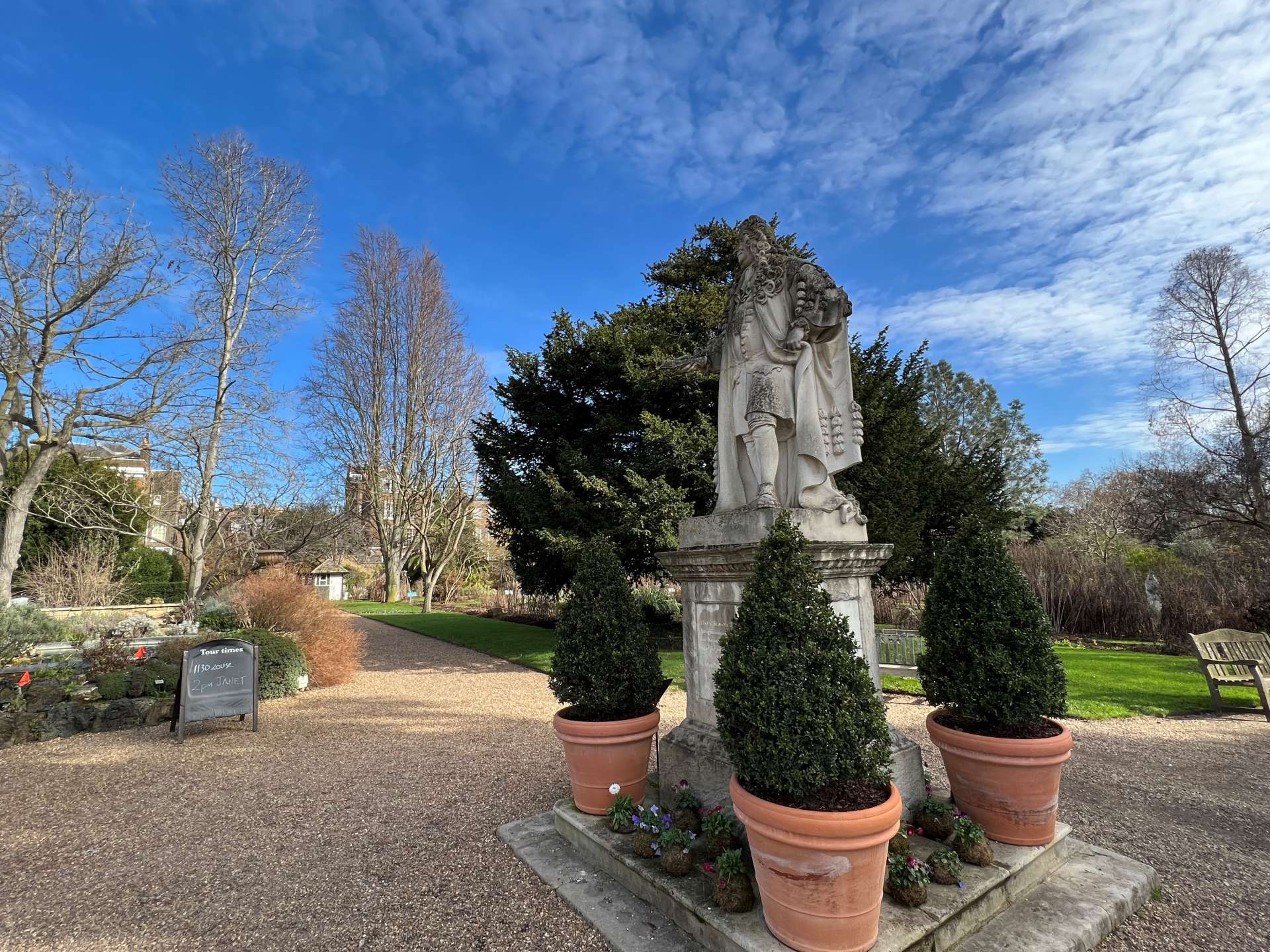 チェルシーの隠れた癒しスポット「Chelsea Physic Garden (チェルシー薬用植物園)」は1673年に薬剤師協会によって設立されたロンドン最古の植物園です。テムズ川沿いの長い壁に囲まれた植物園は今年でちょうど350周年。なんとアメリカ合衆国独立よりも100年ほど古いです。植物園の中心に石像が立っていますが、これは植物園にとって重要な役割を果たしたSir Hans Sloaneという人物のもの。1712年、経営難だった植物園に、自身も薬剤師・博物学者であったSir Hans Sloaneが年間£5の激安価格で土地をリースすることになり、そのおかげで植物園は存続することができました。現在も植物園はHansの子孫に毎年£5の賃貸料を払い続けているそうです。ちなみにSir Sloaneは大英博物館、大英図書館、自然史博物館など主要観光スポットに資金を提供したロンドンの超重要人物です。チェルシーのSloane Squareも彼の名前にちなんだもの。チョコレートミルクを最初に生み出したとされる人物としても有名なんだとか。