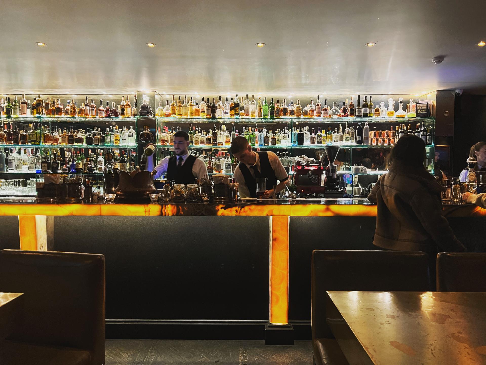 カウンターを眺めるとバーテンダーたちがカクテルを作るてきぱきとした手さばきが、格式のあるバーの趣きを醸し出しています。本格的なカクテルは£15-16といった価格帯、ワインはグラスで£8-9程度なので、普段使いのお店と比べるとちょっと割高ではありますが、チェルシーでこの雰囲気の中ほろ酔いでゆっくりできるなら高すぎないかなという感じです。筆者はJak's revolutionというラムベースのフルーティーなカクテルを、友人はグラスの赤ワインを注文しました。ノンアルコールのカクテルであるモクテルもありました。ちなみに食事も可能で、地中海・イタリア・イギリスにインスパイヤ―された美味しいメニューが用意されています。