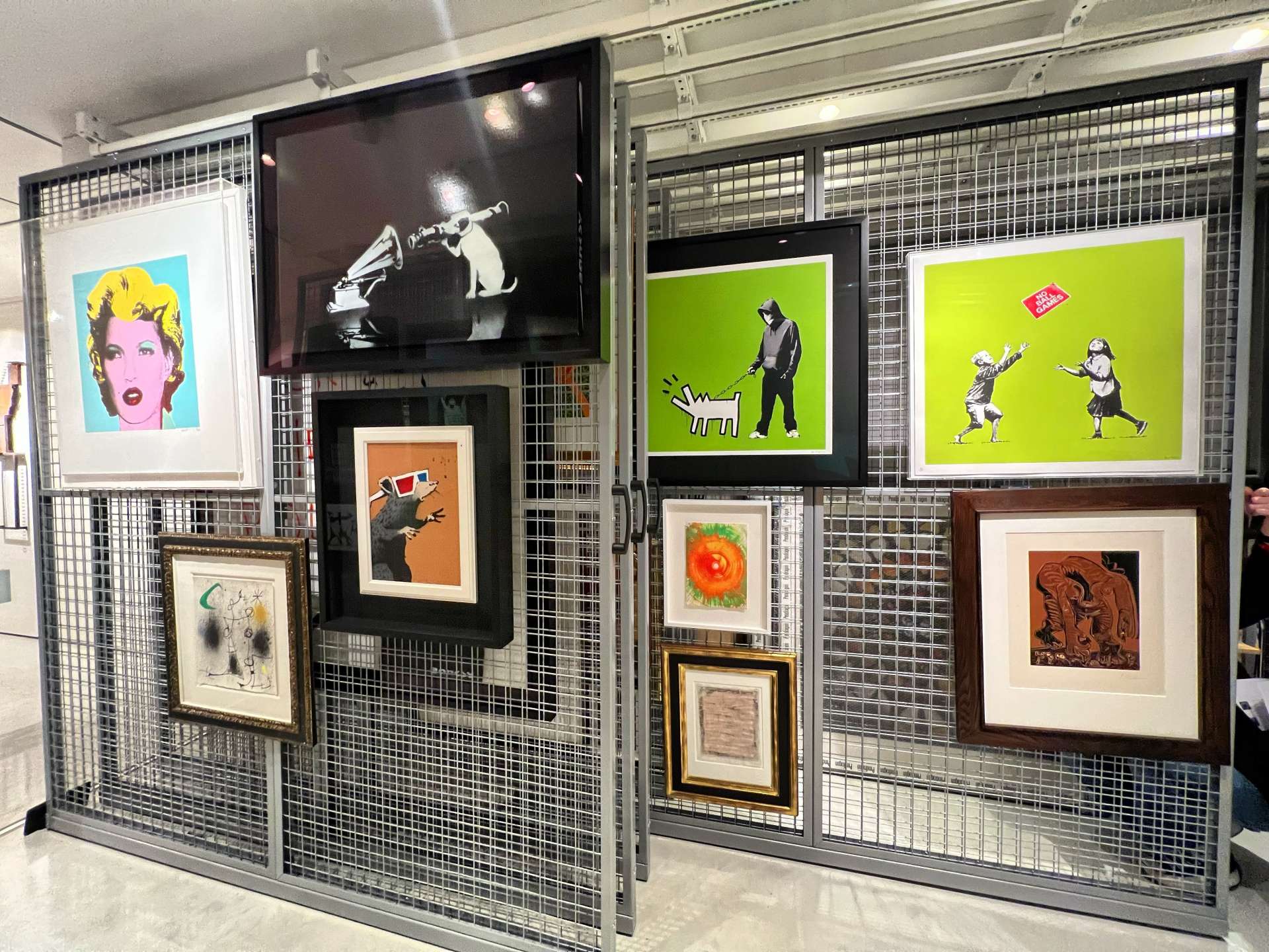 ギャラリーのスタッフの方はとても親切で、購入客には見えないであろう素人丸出しの筆者にもアート作品について丁寧に説明してくれました。「バンクシーがあると聞いたのですが」と聞くと、セキュリティー付きの扉を開けてバンクシー作品を見せてくれました。写真には「HMV(His Master's voice)」という犬がスピーカに蓄音機を向けている作品、画家キース・へリングの吠える犬が使用されているのが印象的な「Choose Your weapon」という作品、ネズミが主役の「3D Rat」という作品が写っていますが、それ以外にも何点もありました。筆者が日本人ということで、スタッフの方は「入荷したばかりだけど大好きなの!」と草間彌生さんの作品も見せてくれました。写真だとわかりにくいのですが、花の部分も周りの緑の部分もキラキラと繊細に光っていて、眺めているとパワーをもらえるような印象的な作品でした。(最後の写真参照)他にもたくさんのアーティストの作品があり、情熱的に説明してくれるスタッフの方が素敵でアート心が刺激されてとても楽しい時間でした。購入予定がなくてもおすすめのギャラリーです!(宝くじに当たったら草間彌生さんの作品を購入したいです)