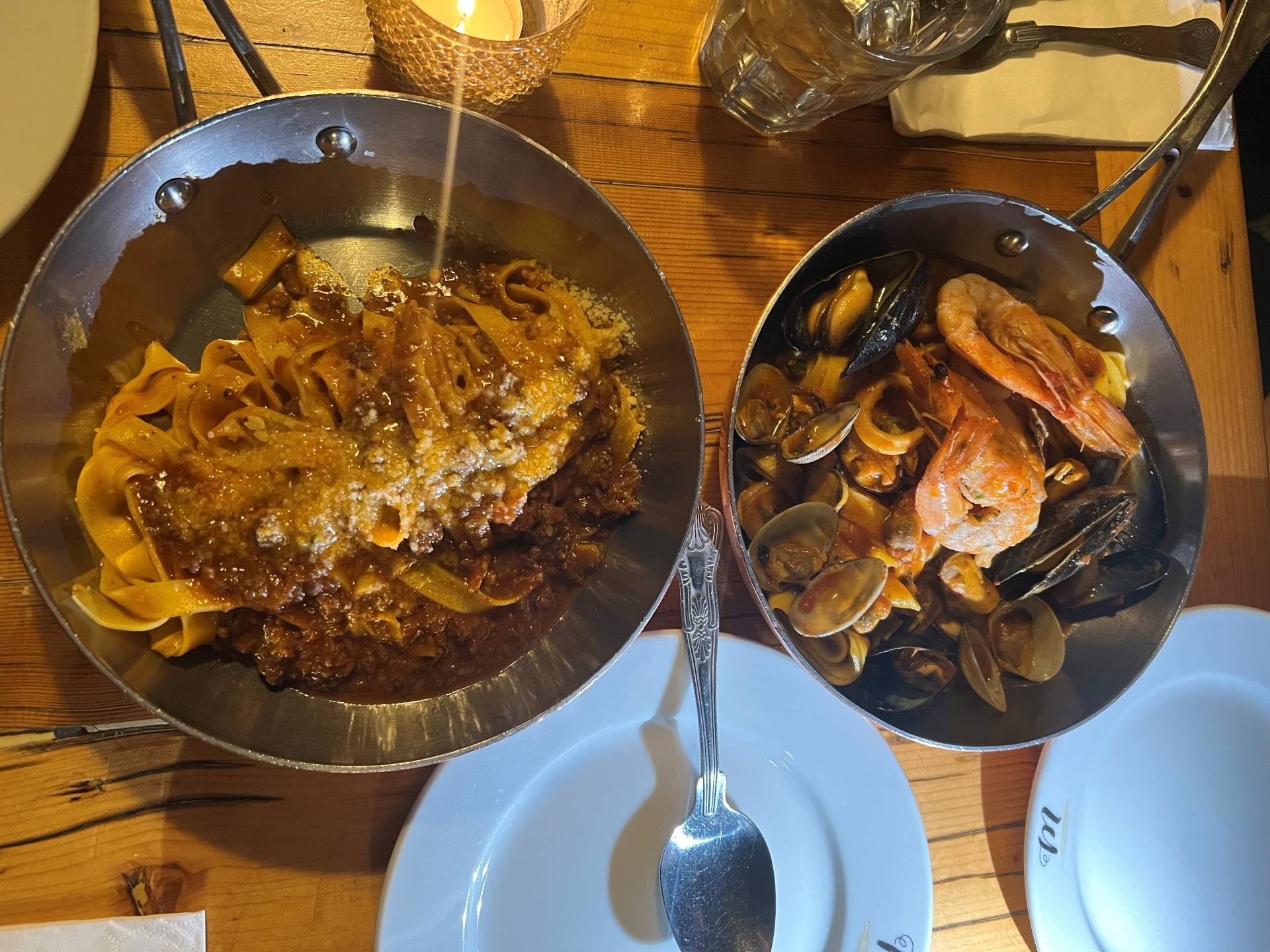 メインのパスタは筆者はボロネーゼのタリアテッレを、友人はシーフードラグーのタリアテッレを注文しました。毎日お店でハンドメイドされているパスタがソースに絡まって絶品です。