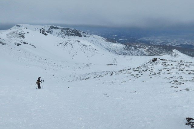 振り返って安達太良山頂を見上げます。