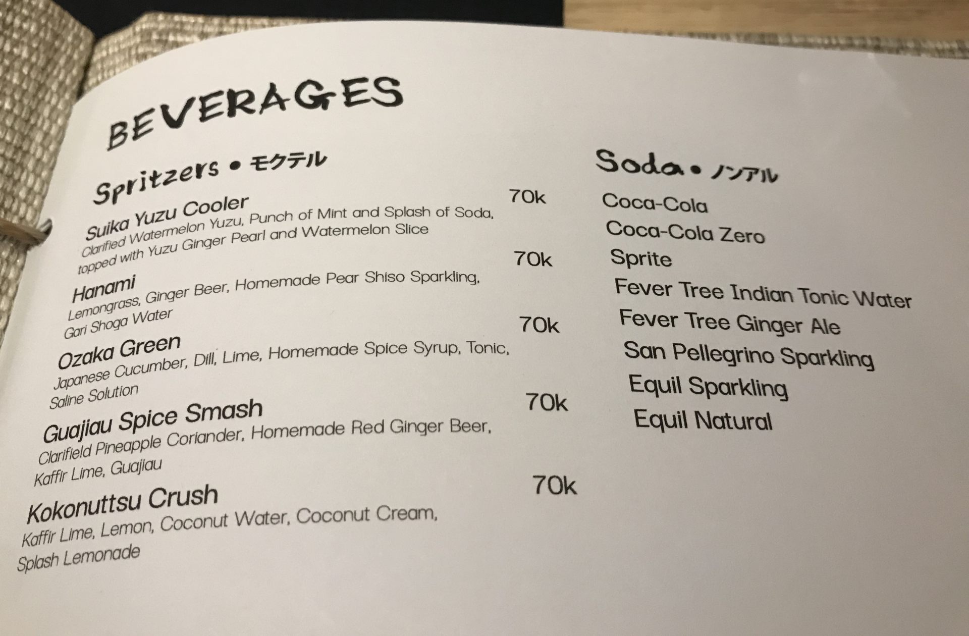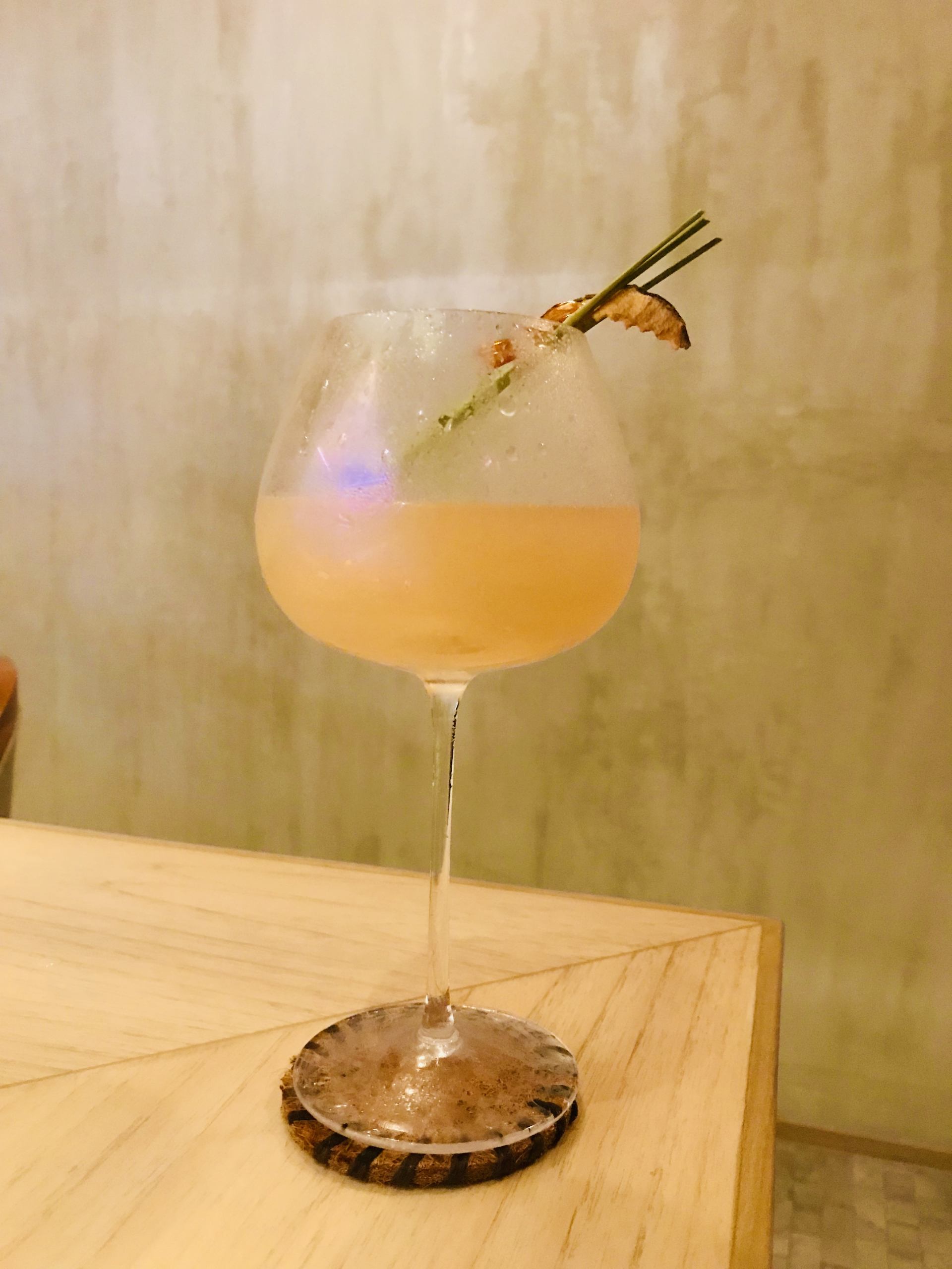 こちらのモクテルは、ジンジャービア、ガリシロップやシソ、レモングラスが効いたとても爽やかで、オリエンタルな風味。