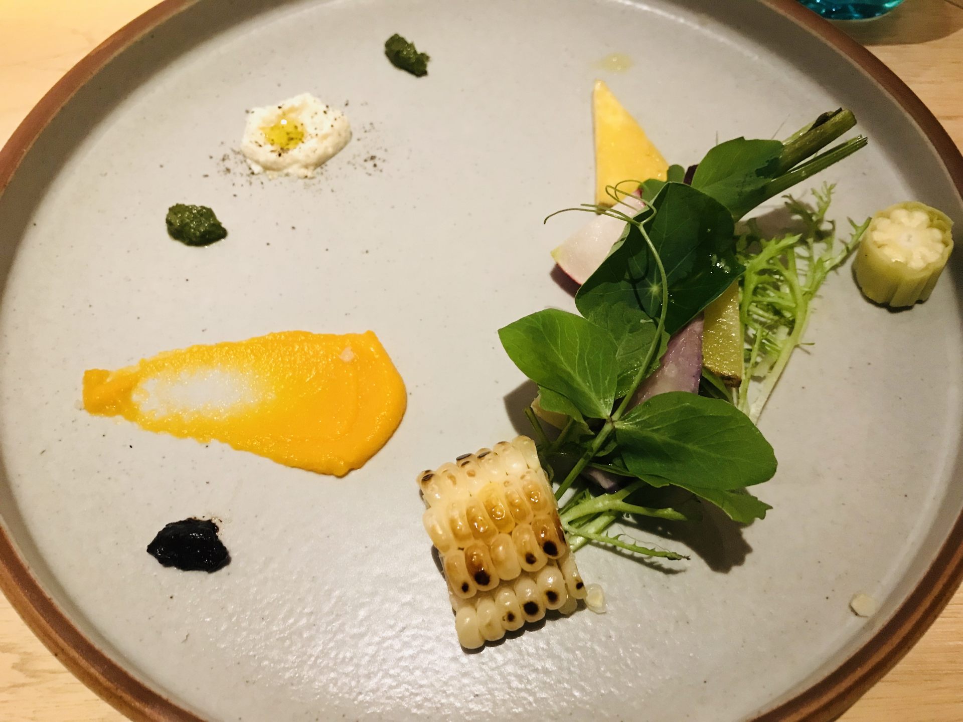 シンプルな一皿ですが、私達日本人も忘れかけていた、日本の心を感じる野菜本来の風味と付け合わせの薬味ソースとの相性で「繊細で深みのある世界」に、誘われます。