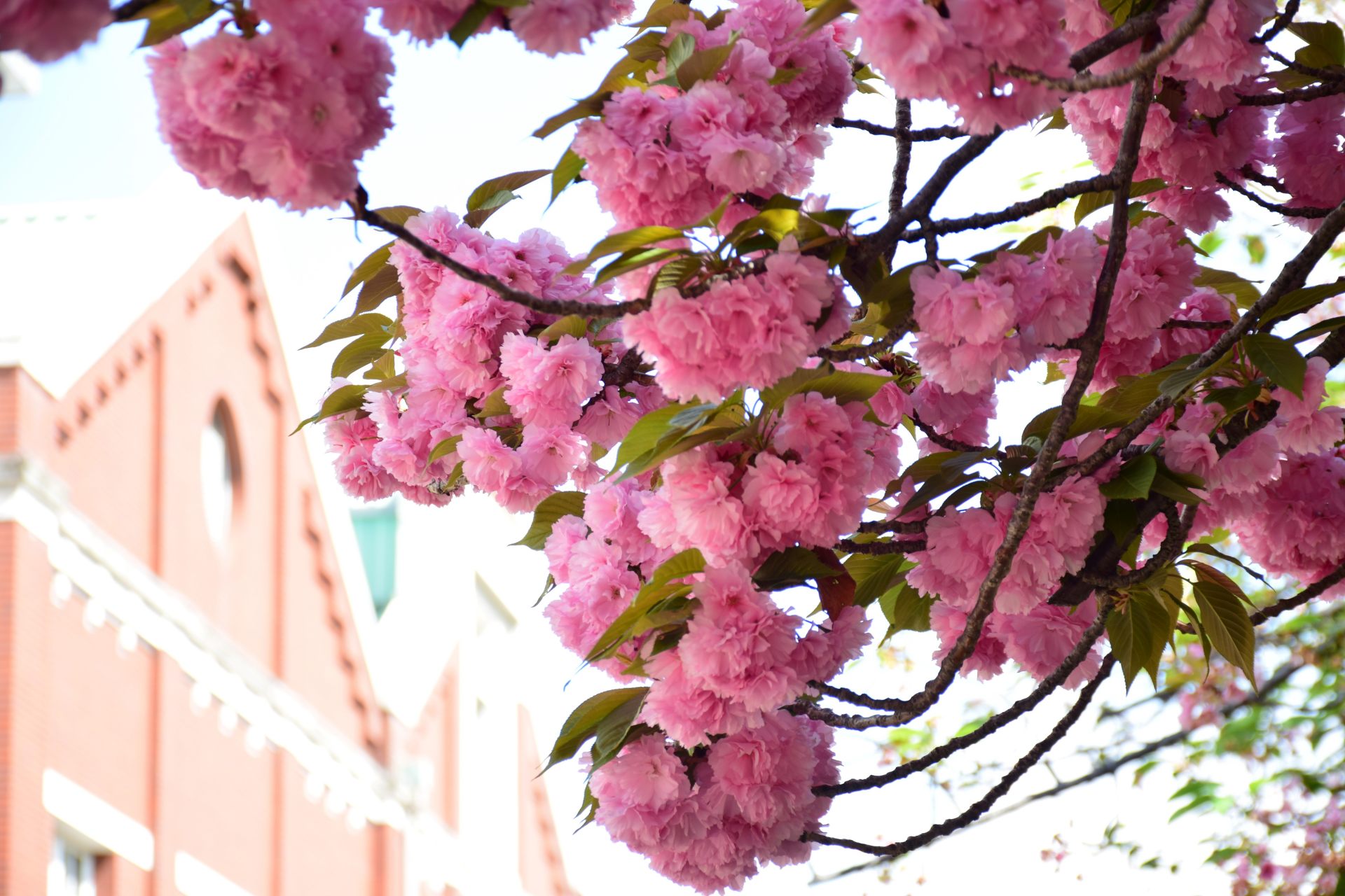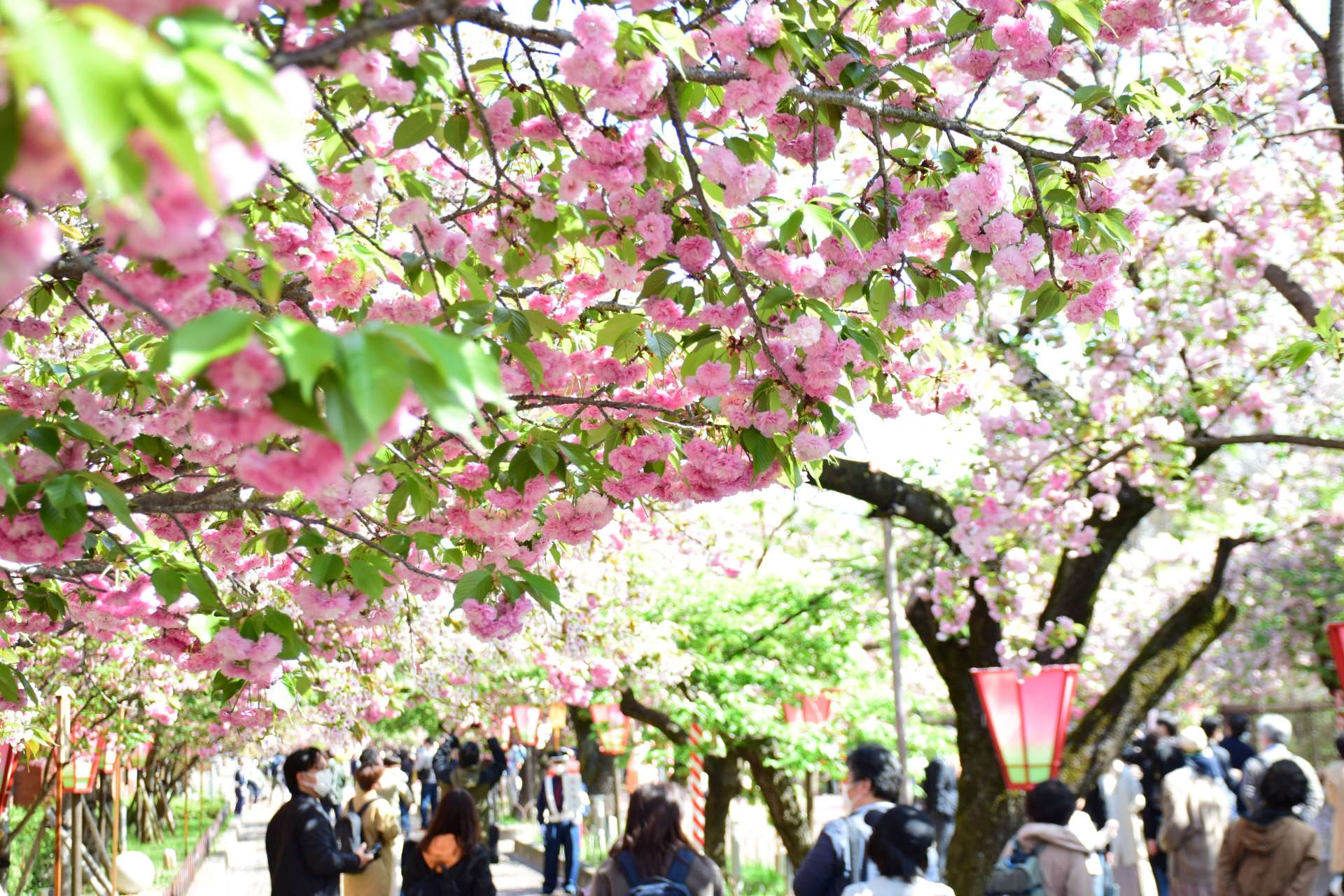 八重桜がメインなので、ソメイヨシノの開花から1週間程度遅れての開花となります。