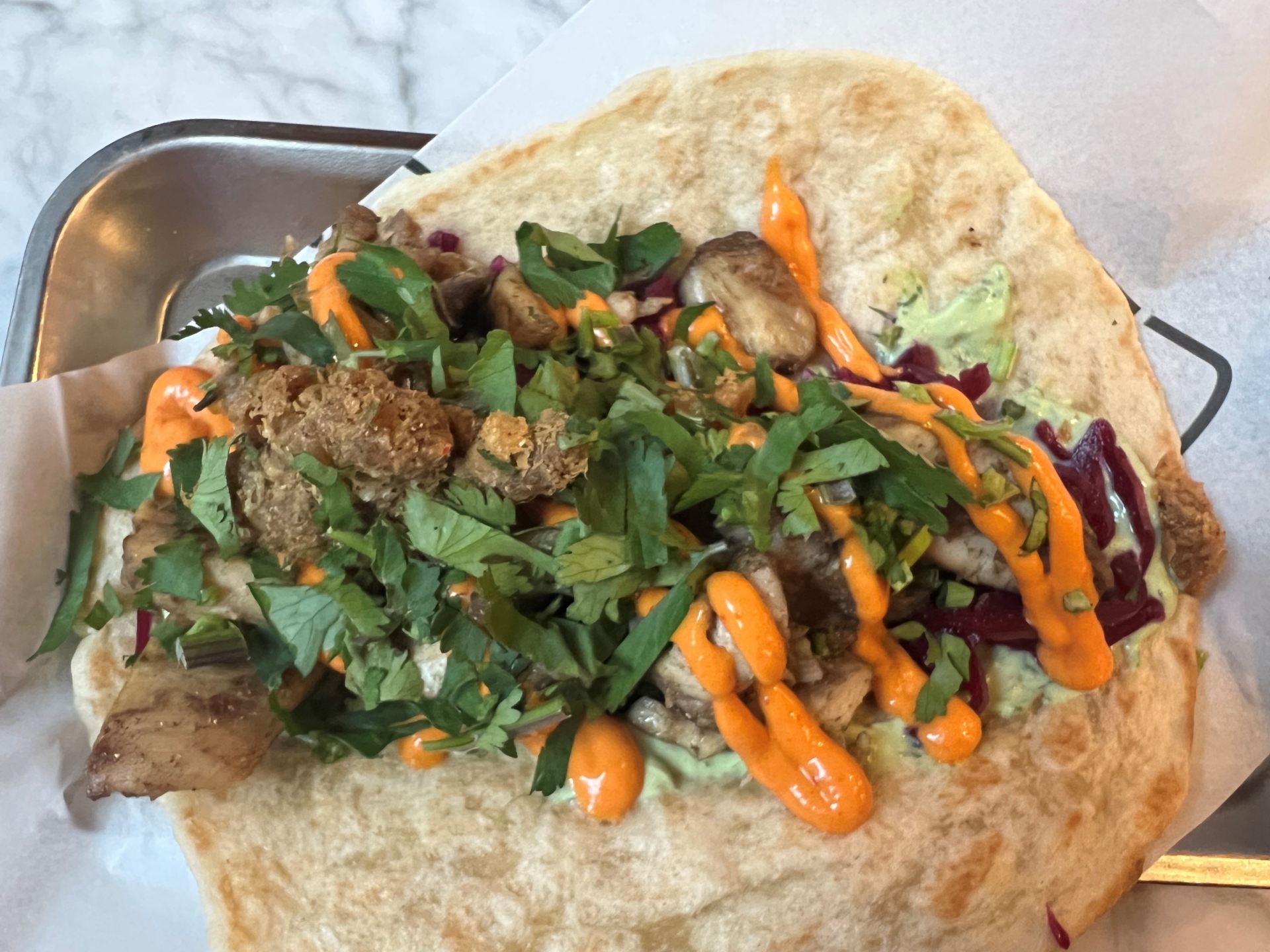 ちなみに人気店なので筆者が行った際には15分待ちくらいの列ができていました。サクッと食べられるけど、新しい発見のあるファースト・フード、ぜひお試しください。