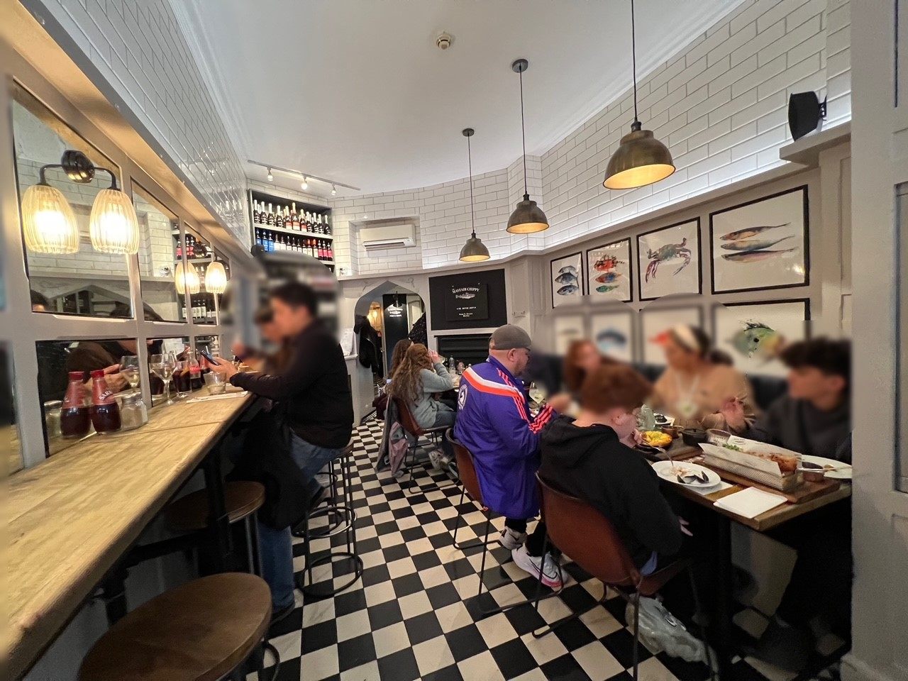 お店はメイフェアですが、入りやすい雰囲気です。筆者は21.95ポンドの「メイフェア・クラシック」というフィッシュ&チップスを注文しました。トップの写真にある通り、コッドまたはハドックのフィッシュ&チップスに、タルタルソース、カレーソースとマッシ―ピーズの3つが揃ったセットになっています。魚もチップス(フライドポテト)もカラっと揚がっていて良し。魚が大きすぎないので、チップスまで食べきるのにちょうどいいボリューム感でした。レモンと塩で楽しんで、タルタルとカレーソースで味変を試して、大満足です。ロンドンで一番かどうかはもはや個人の好みのレベルで、このお店が一番という人がいるのも頷けます。間違いなく美味しかったです。ただ、個人的にはリッチモンドのPier1(ピア―1)の方が少し魚にクセがあって好きだったかなと。しかし、こちらのお店も絶対に後悔はしないと思いますので、フィッシュ&チップス好きな方は是非寄ってみて下さい。
